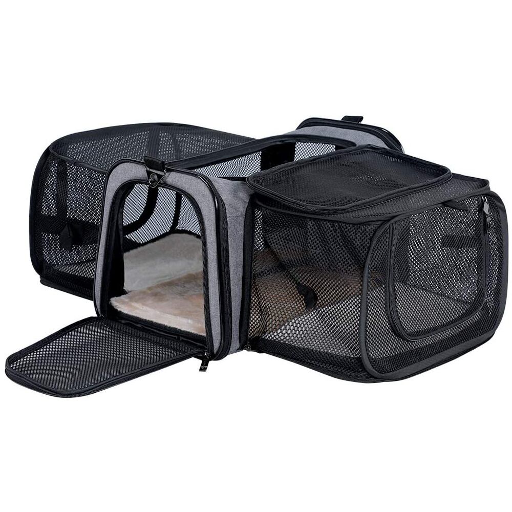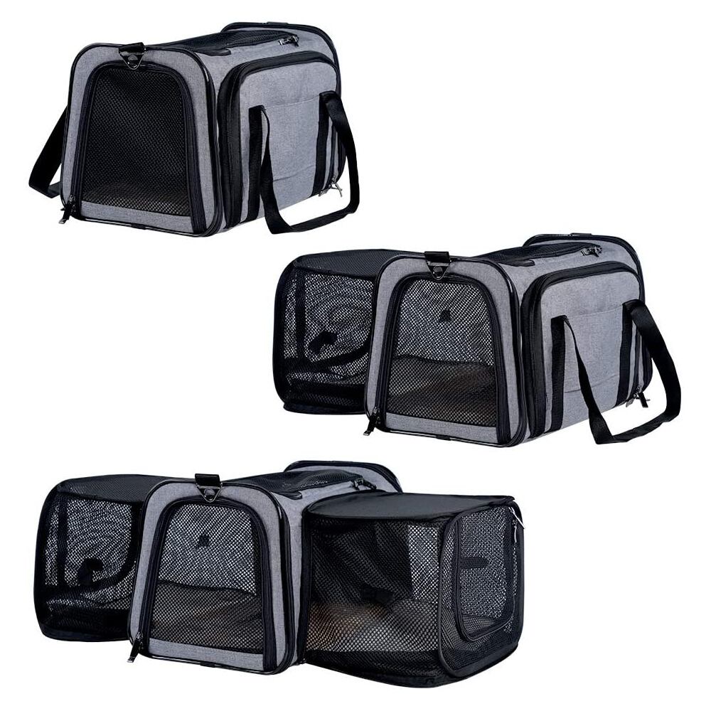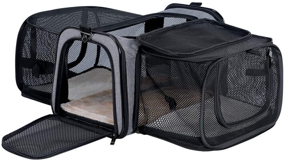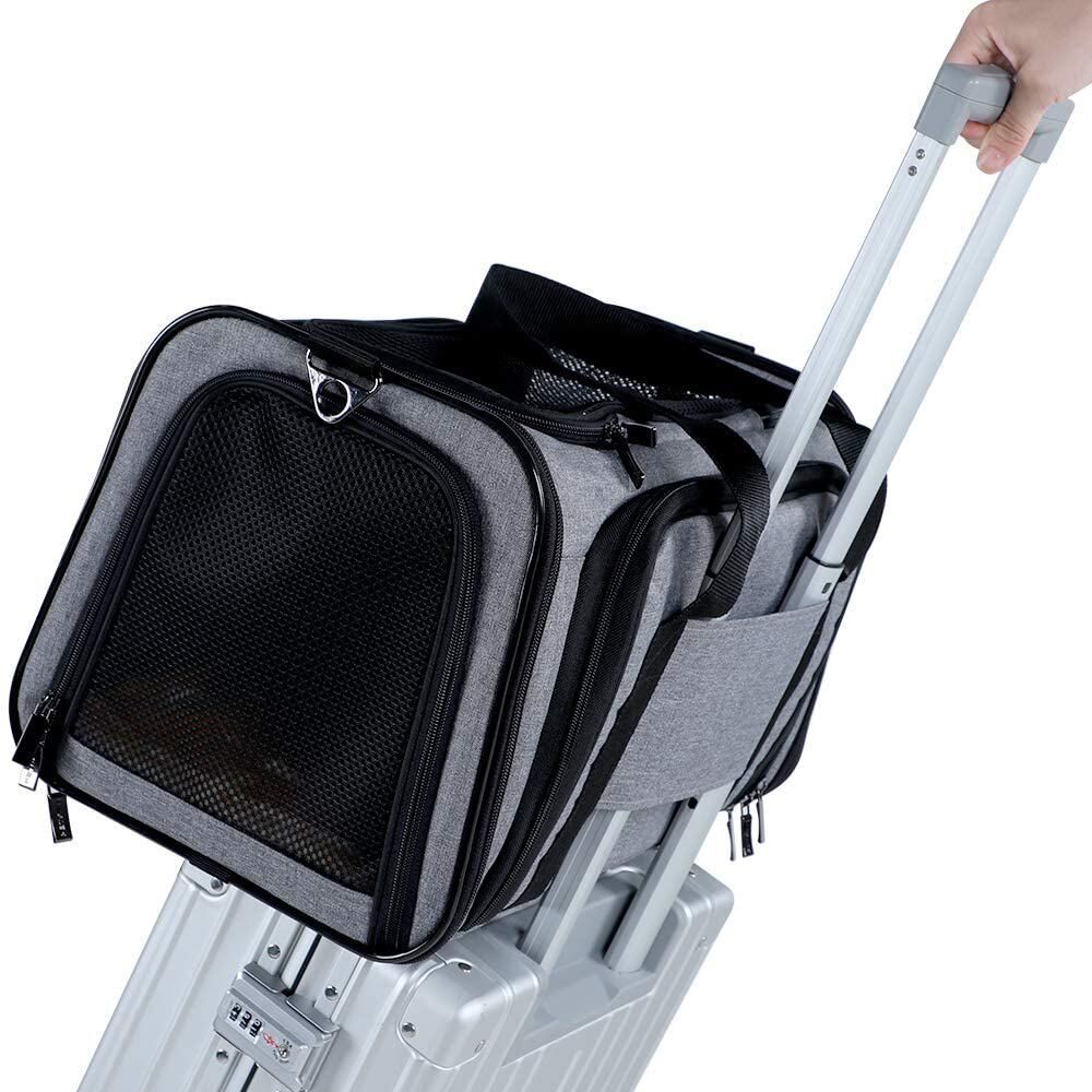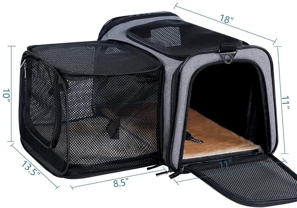 新作 15ポンドまでの2つの大きなエクステンションペットを備えた航空会社承認の固体拡張可能ポータブルソフトドッグキャリア