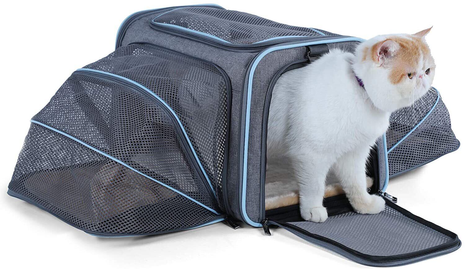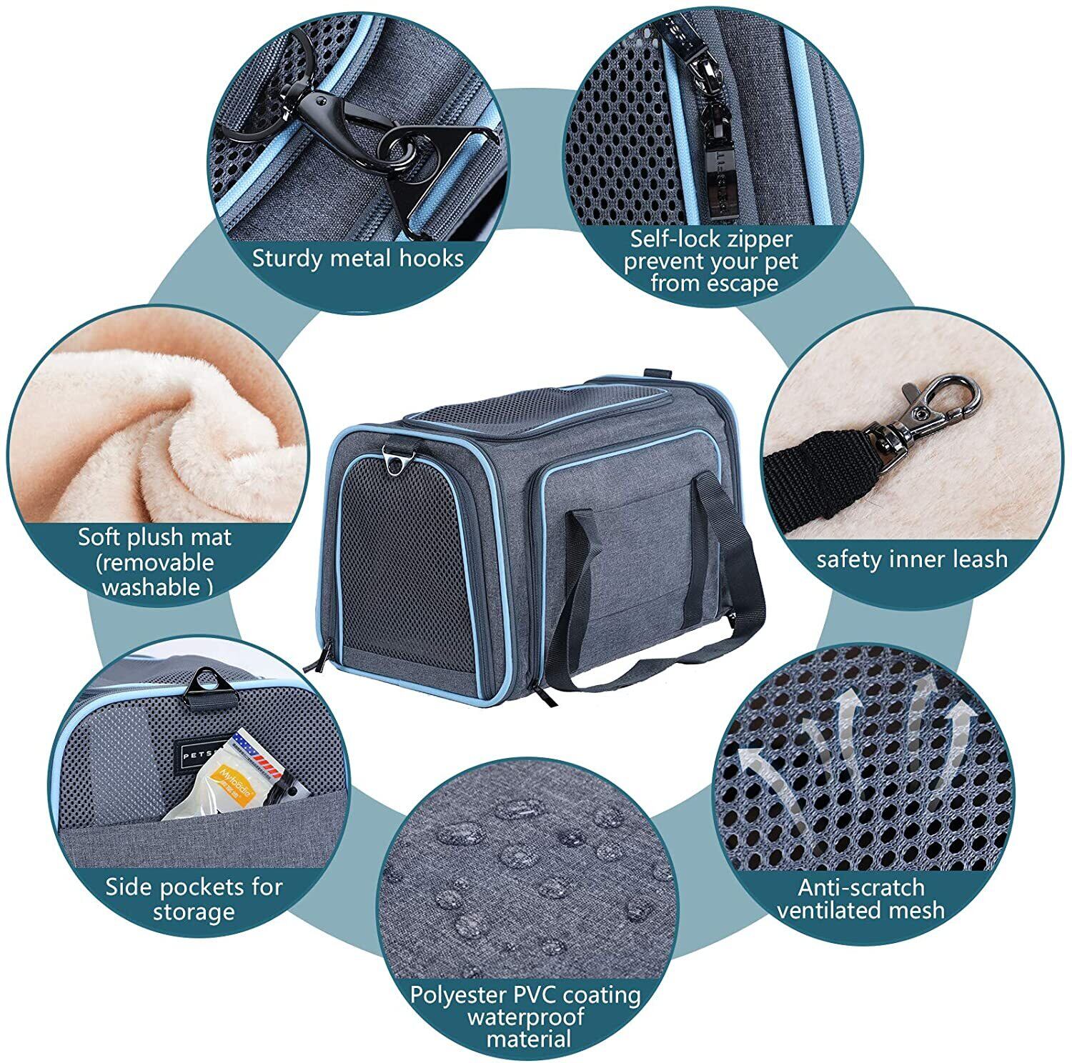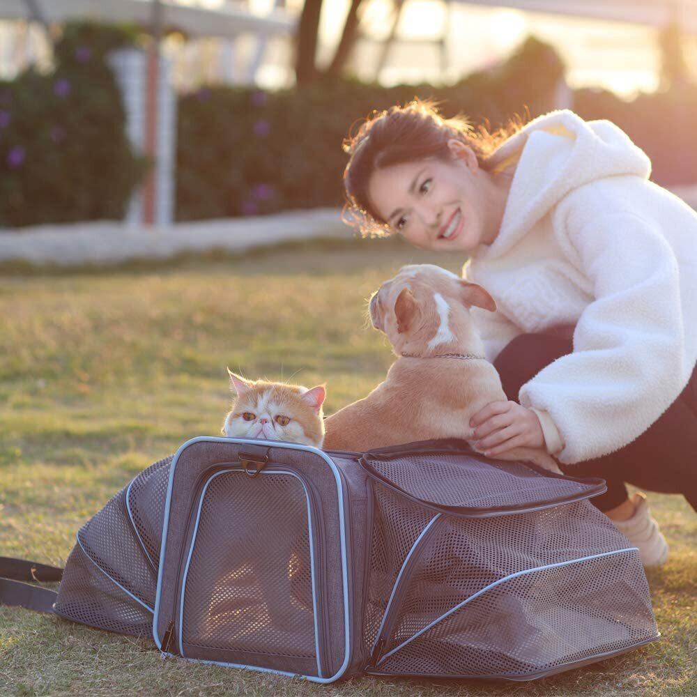 新作 拡張可能なキャットキャリアドッグキャリア、航空会社承認のソフトサイドポータブルペットトラベルウォッシャブルキャリア子猫