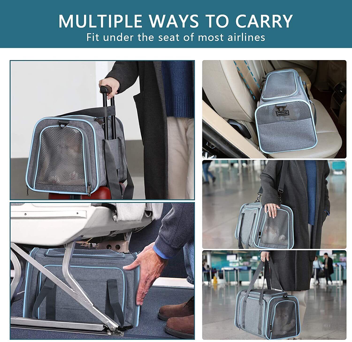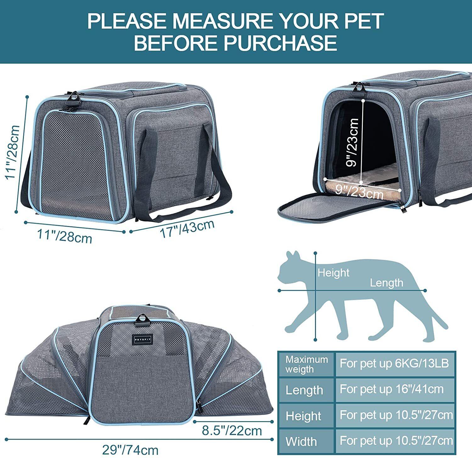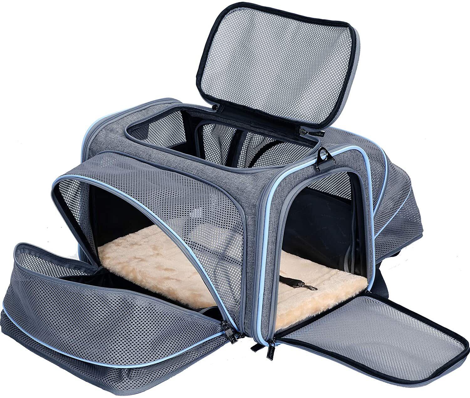 新作 拡張可能なキャットキャリアドッグキャリア、航空会社承認のソフトサイドポータブルペットトラベルウォッシャブルキャリア子猫