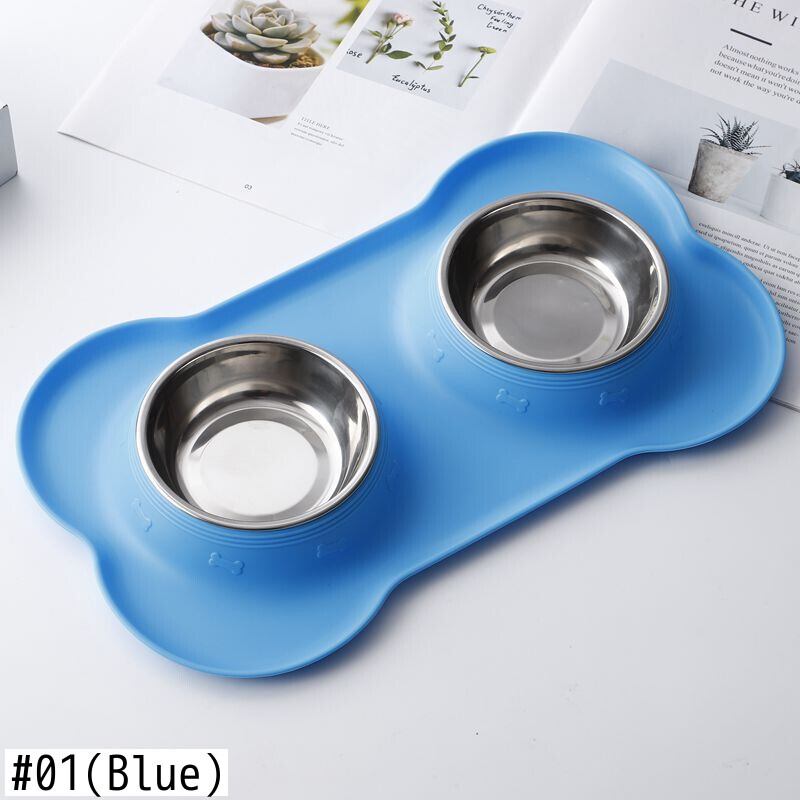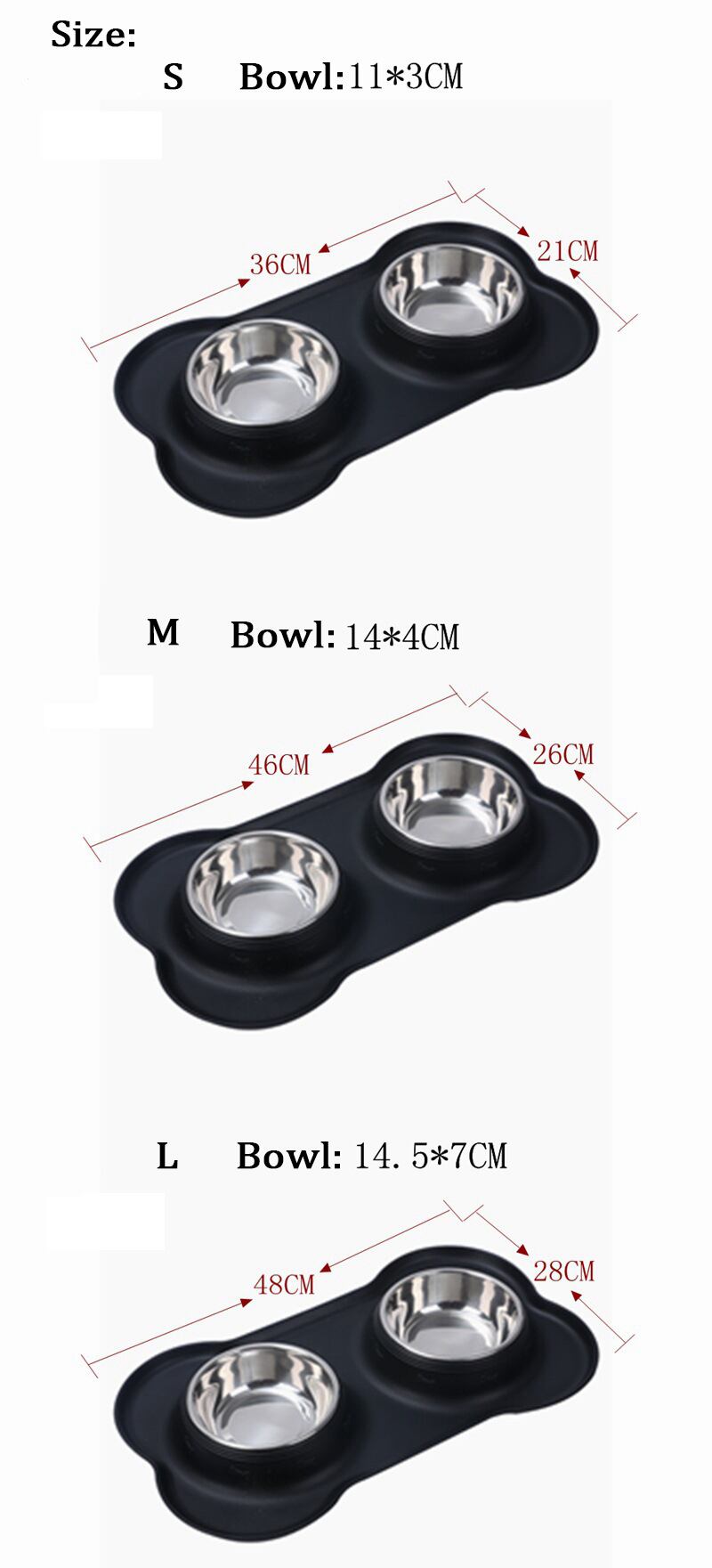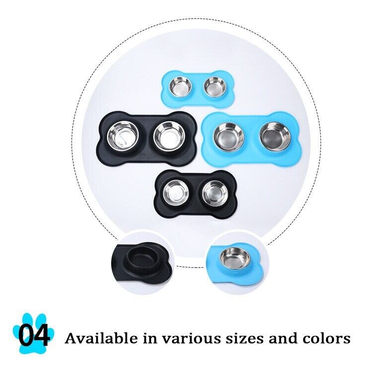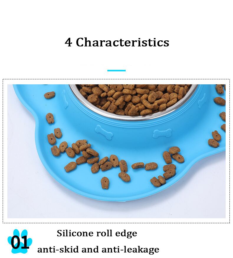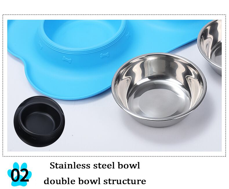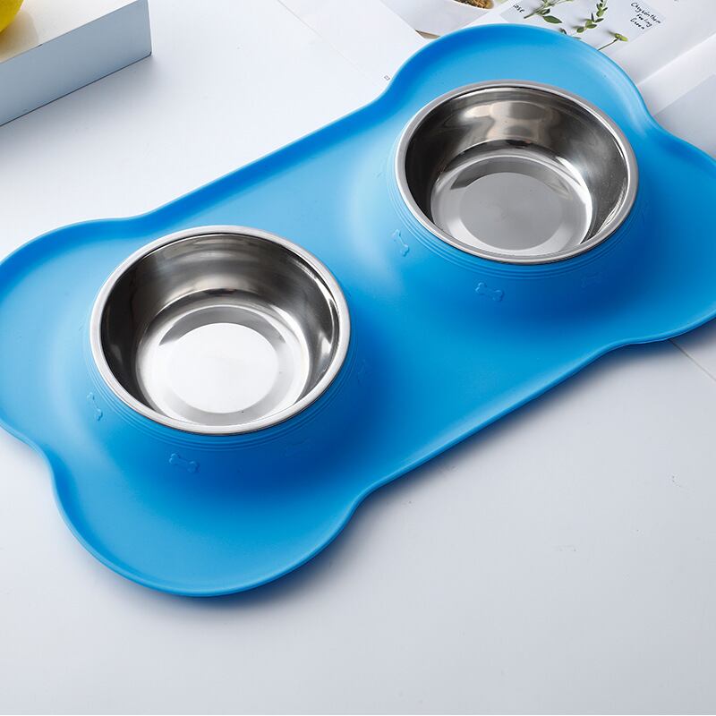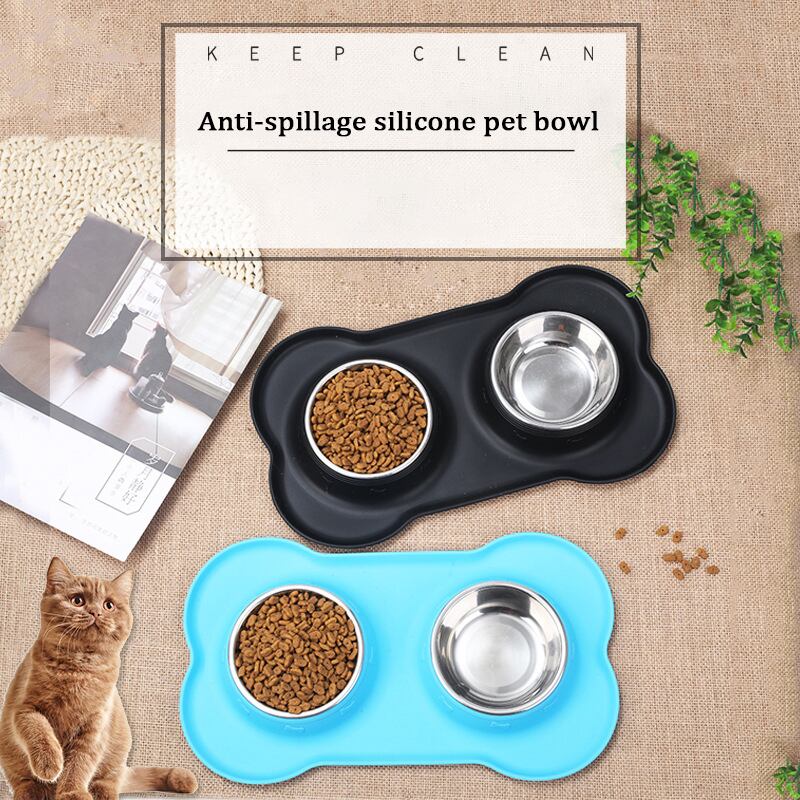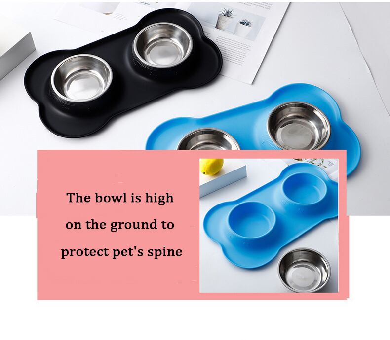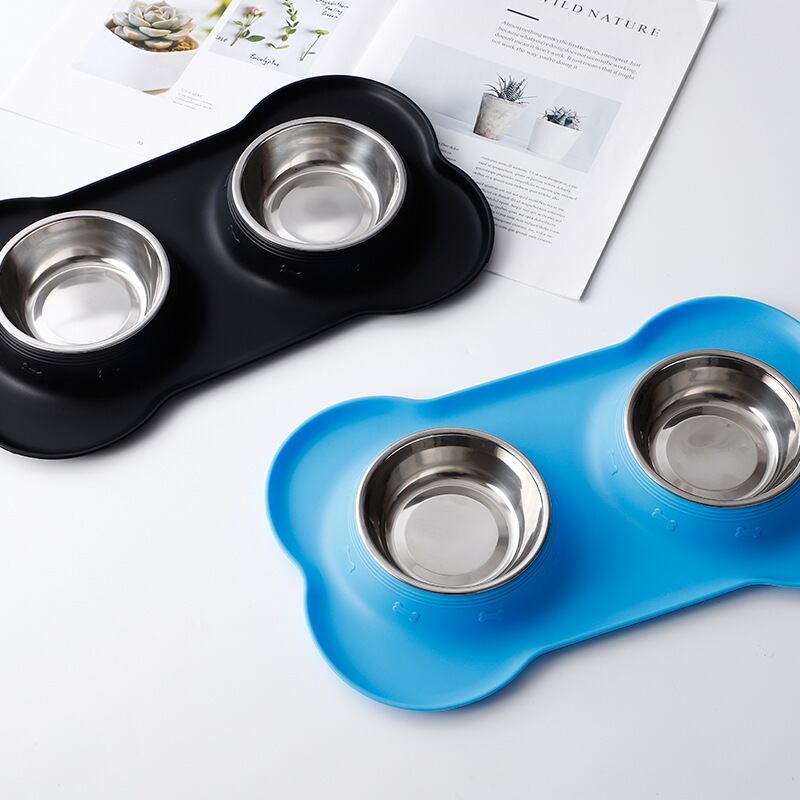 新作 シリコン滑り止めダブルドッグボウル耐久性のあるステンレス鋼水フードフィーダーペット給餌飲用ボウル犬猫ペット用品