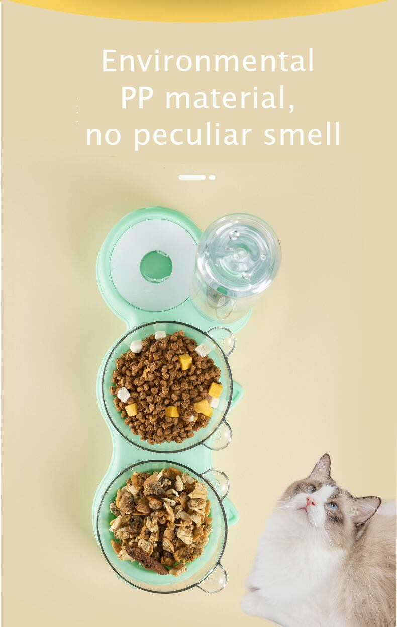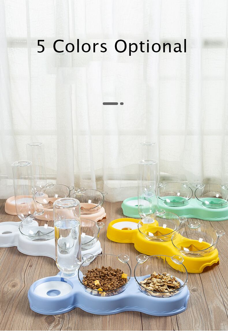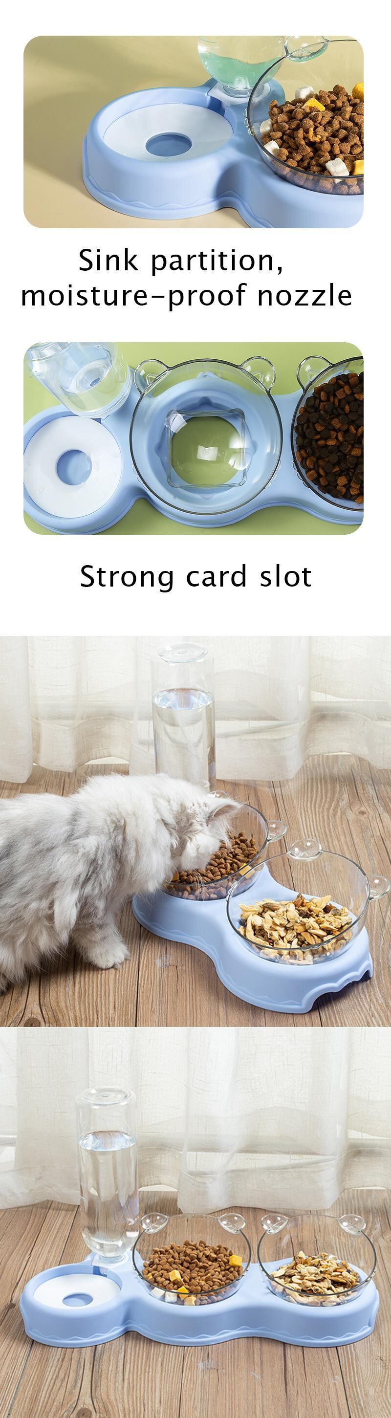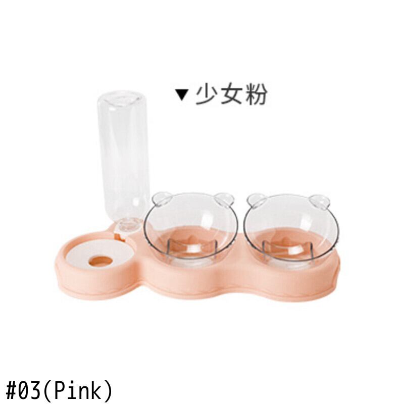 新作 自動フィーダーペットキャットボウル犬猫フードボウルウォーターファウンテン付きダブルボウル飲用レイズドスタンドディッシュボウル猫