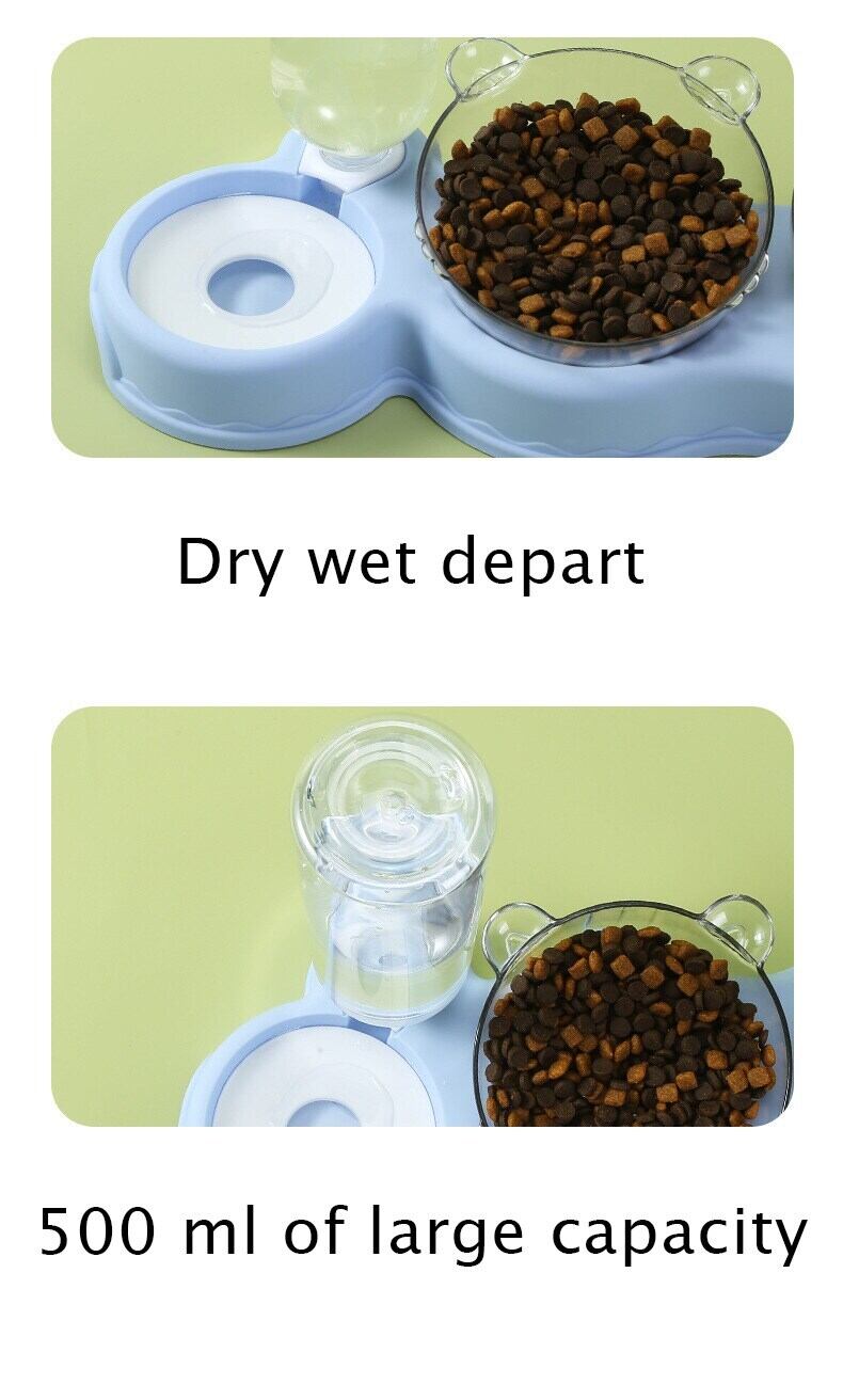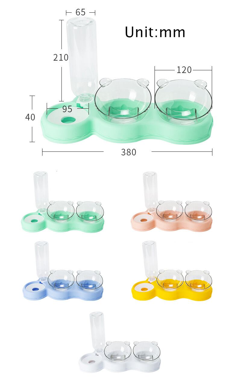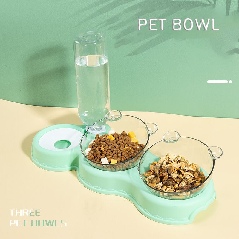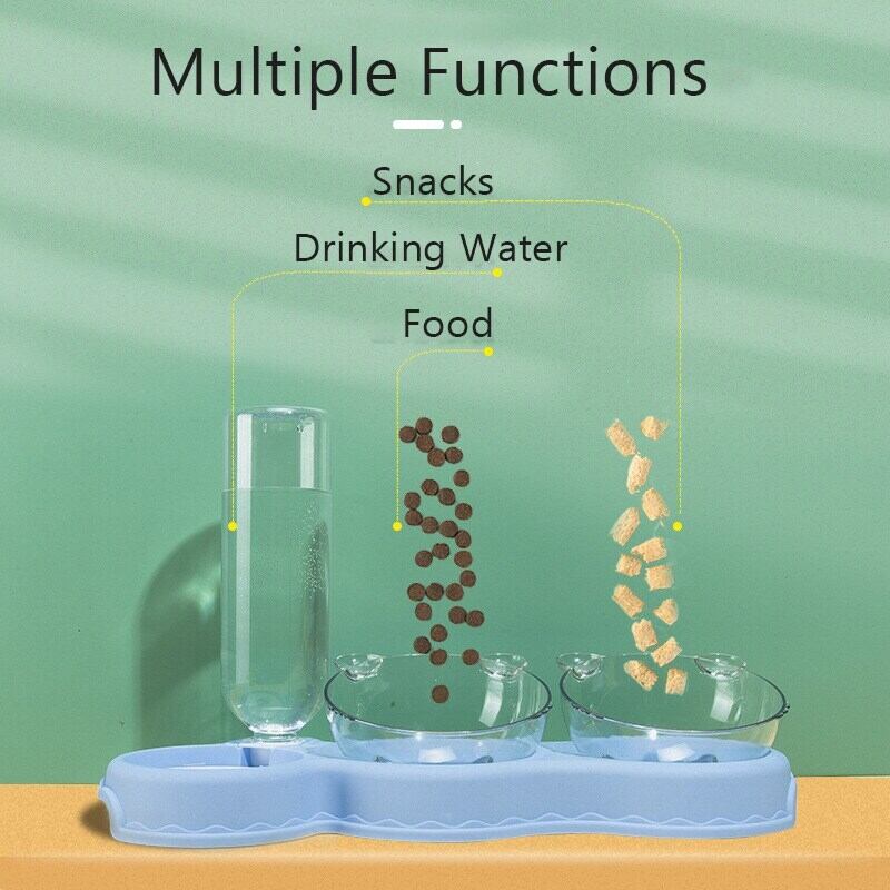 新作 自動フィーダーペットキャットボウル犬猫フードボウルウォーターファウンテン付きダブルボウル飲用レイズドスタンドディッシュボウル猫
