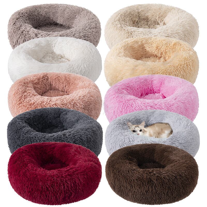 新作 スーパーソフトラウンドロングぬいぐるみ犬用ベッド大型犬冬のペット製品クッションふわふわ快適な猫マット用品アクセサリー