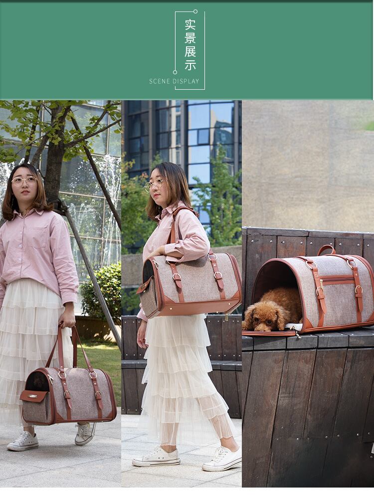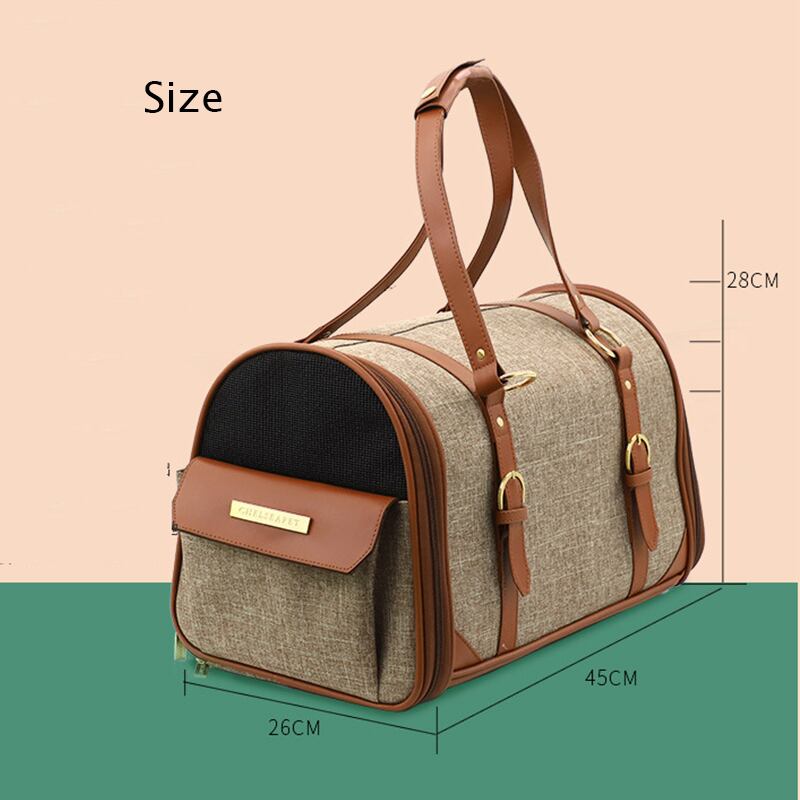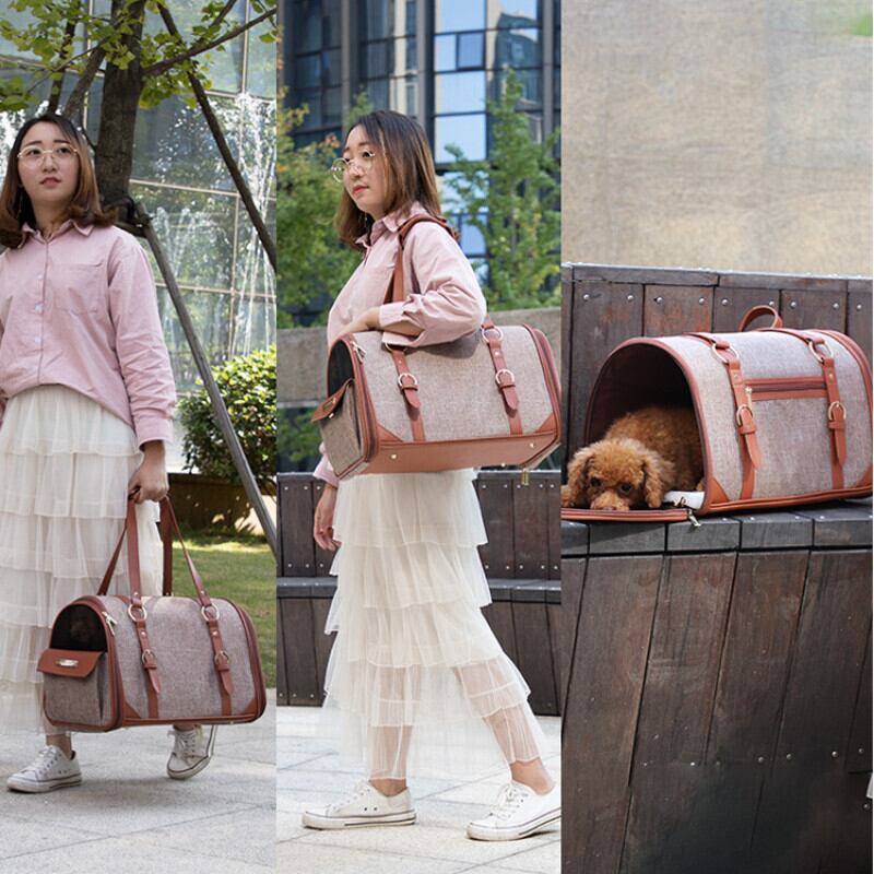 新作 -エンドPUレザーペットトートキャットキャリアポータブル折りたたみ式ワンショルダーペットバッグペットハンドバッグロック付き安全ジッパー付き