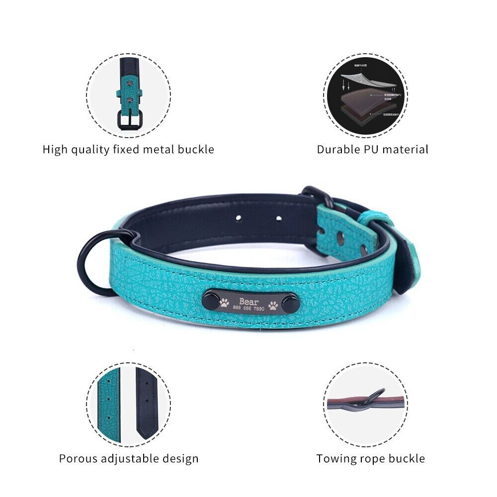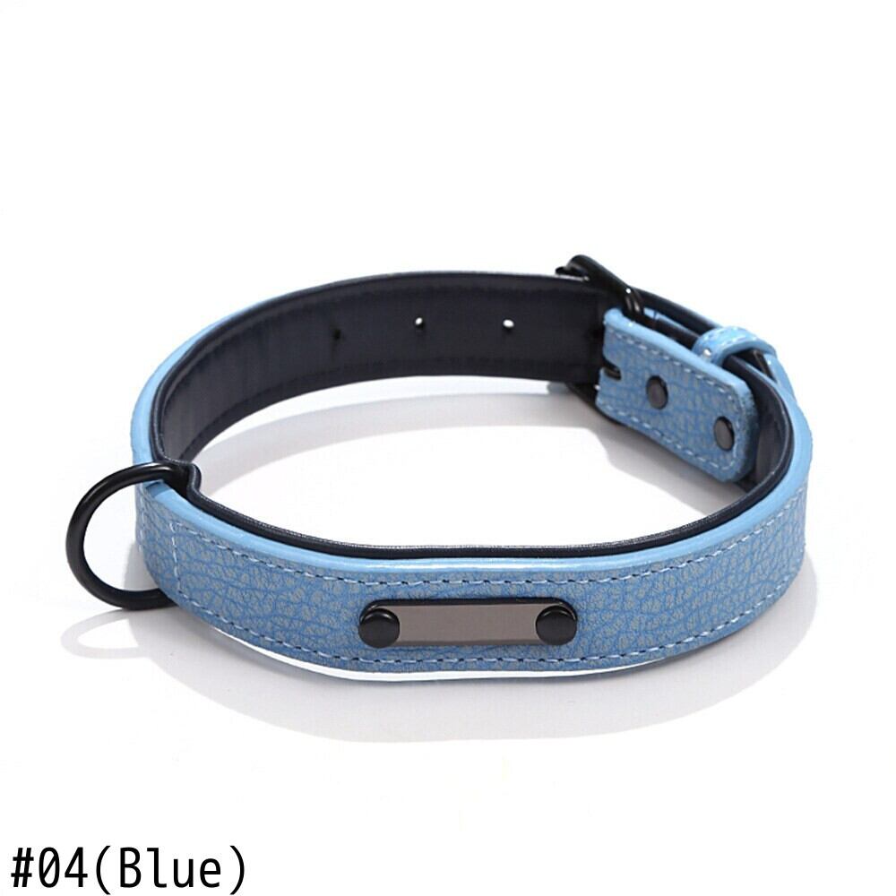 新作 パーソナライズされたPU犬の首輪ペットの首輪刻まれたIDタグネームプレート調整可能な小中大犬ピットブルパグ犬の首輪
