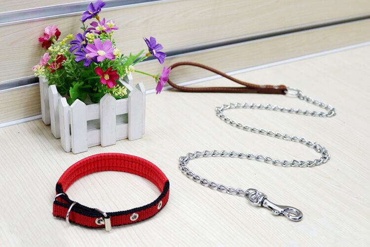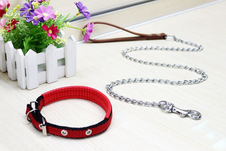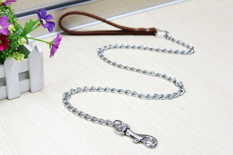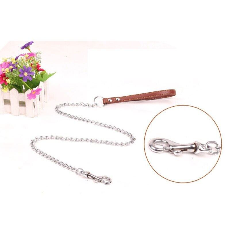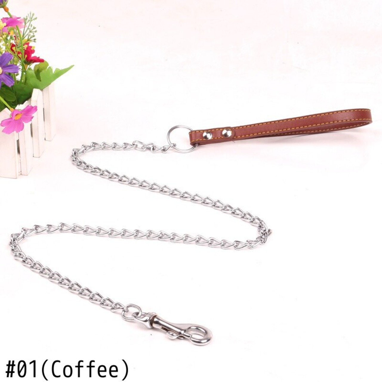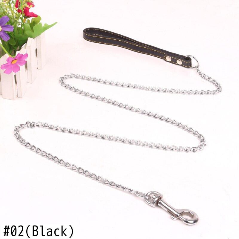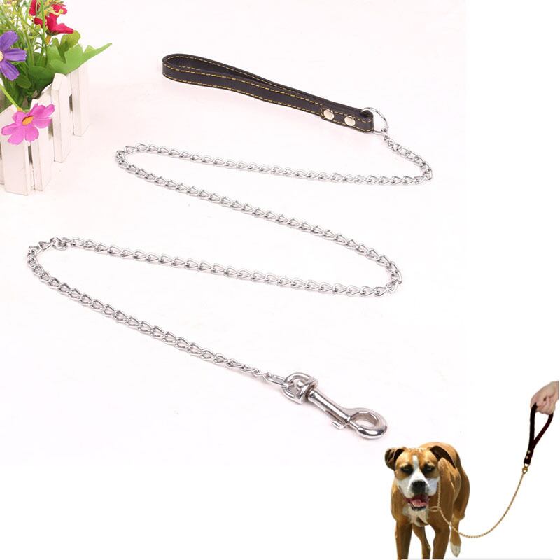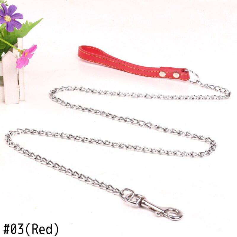 新作 ドッグリーシュラージドッグチェーンペットPUハンドルメタルアイアンドッグリーシュツイストチェーンペットチェーンドッグアクセサリー