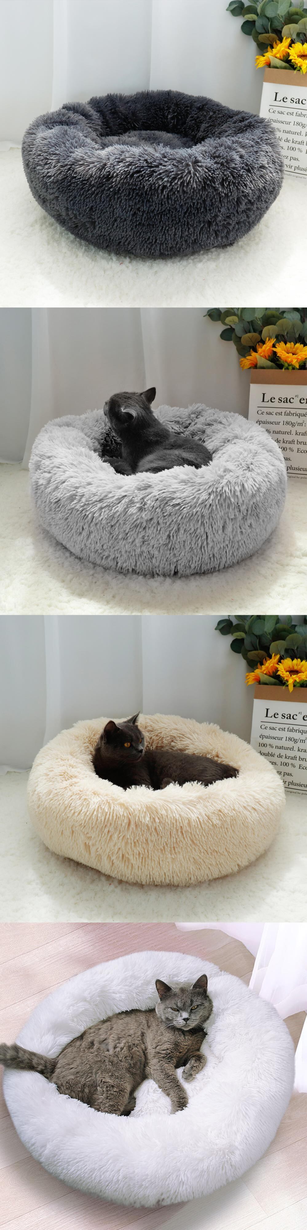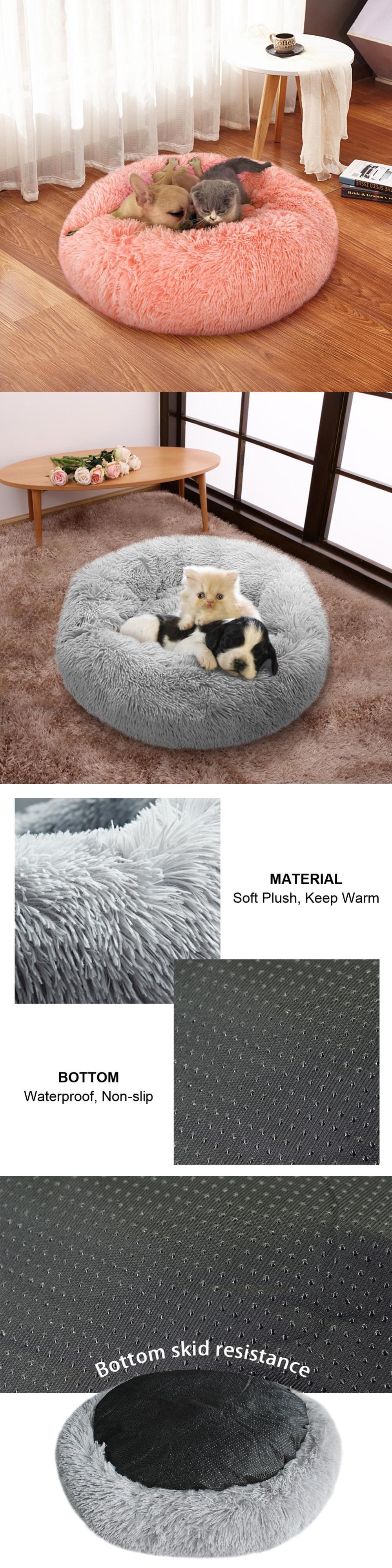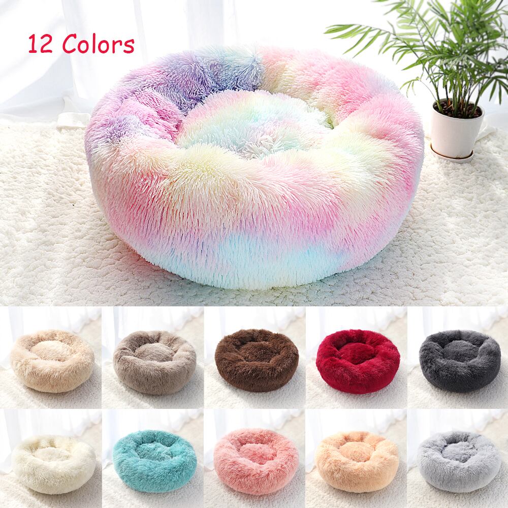 新作 ソフトラウンドロングぬいぐるみペット犬のベッド暖かいフリース犬犬小屋の家ペット犬のベッド中型大型犬猫ソファクッションマット冬