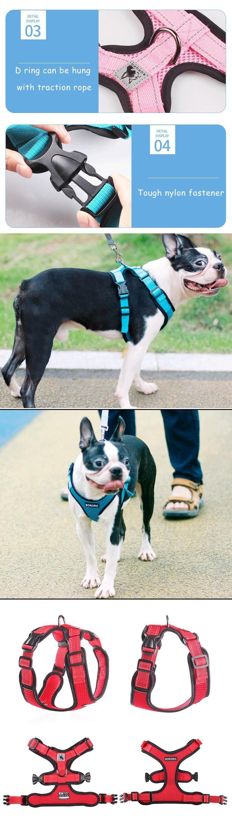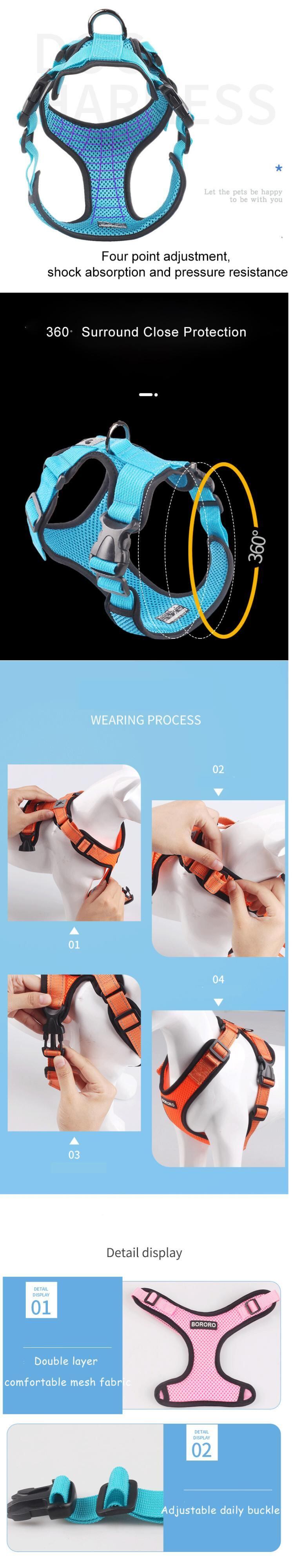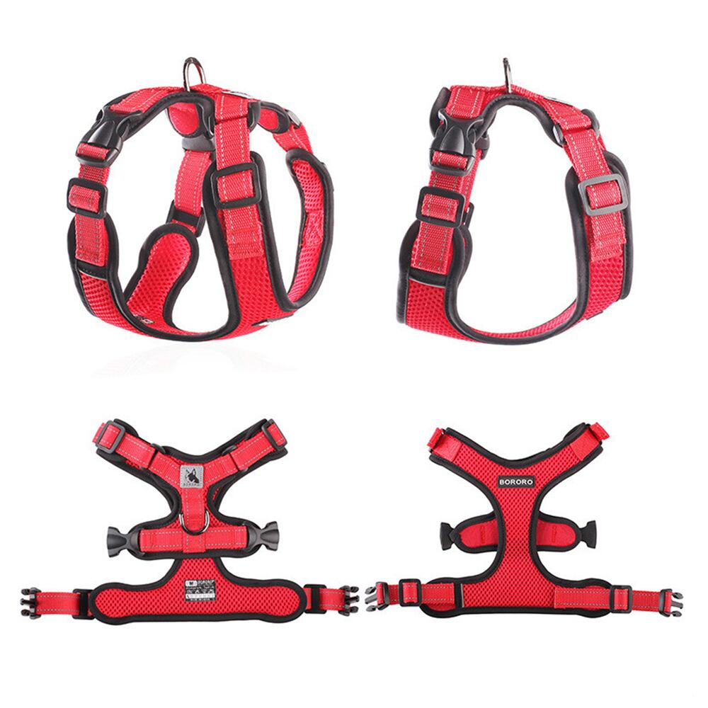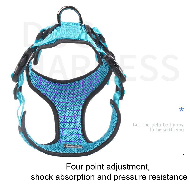 新作 ホットスタイルの反射型犬用ハーネス通気性ペットチェストストラップ小型中型犬用メッシュクロスソフトパッド入りハーネス犬付き