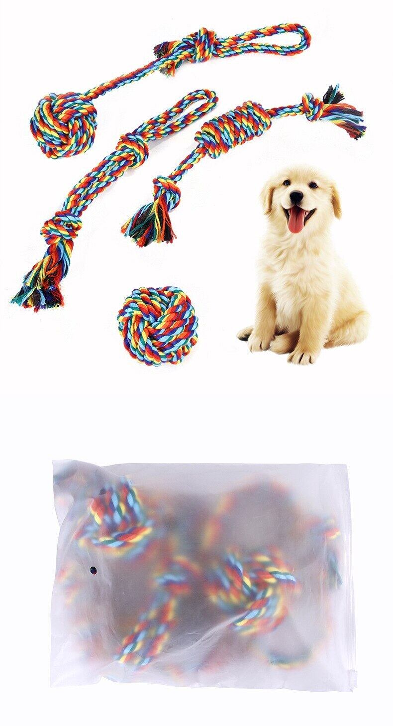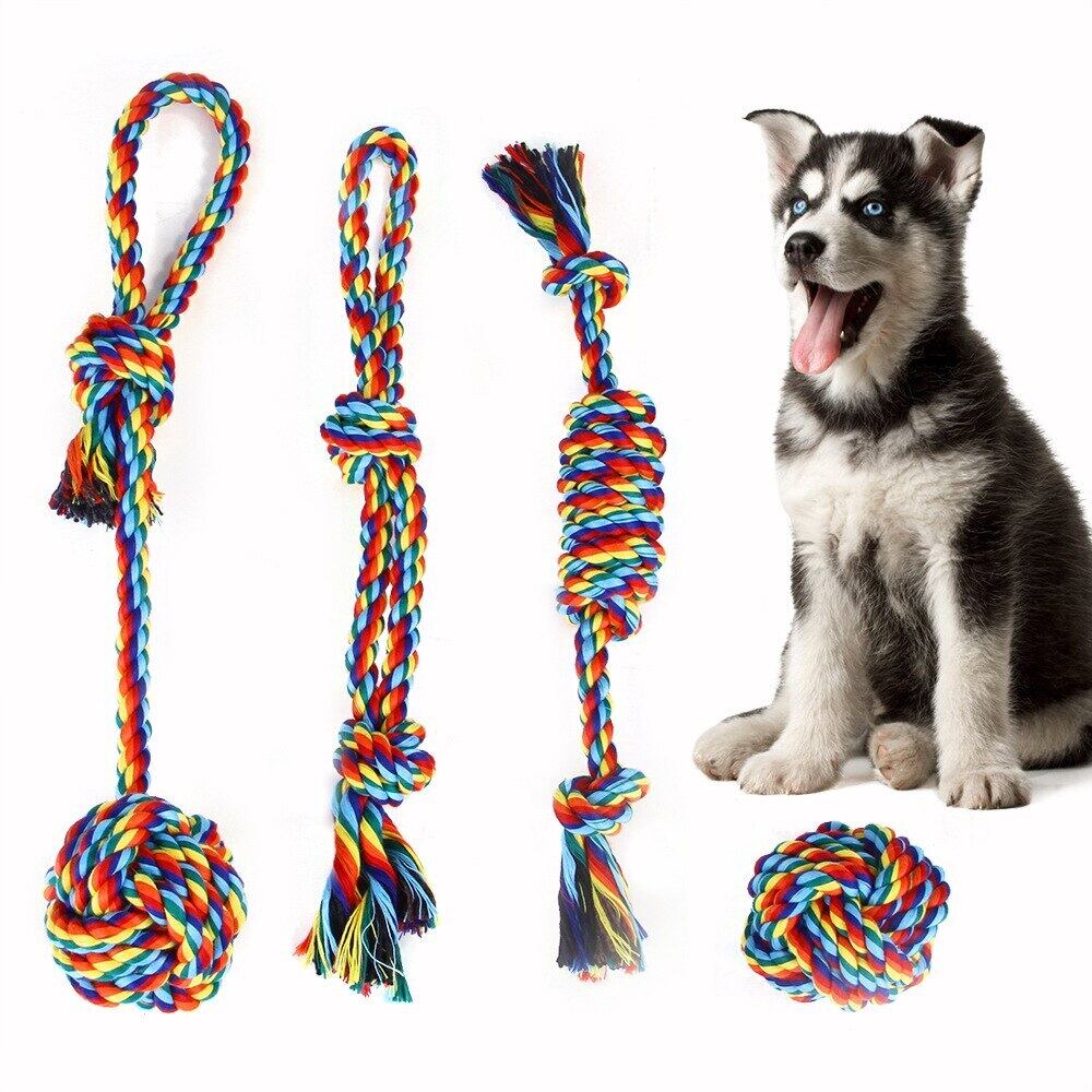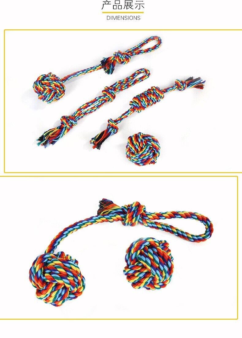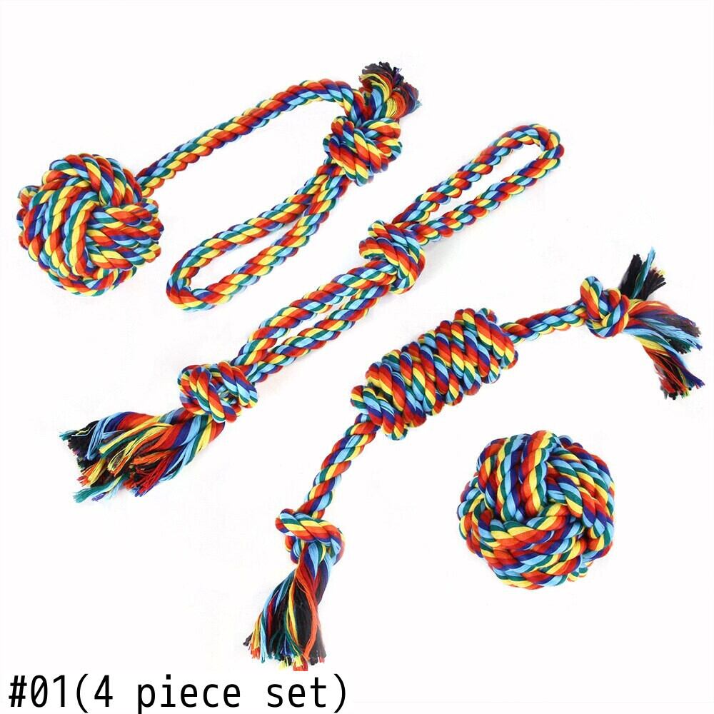 新作 ペットモラー製品レインボーコットンロープ犬噛むおもちゃセットカラフルなネクタイ犬と猫の歯のクリーニング犬のおもちゃ犬用品