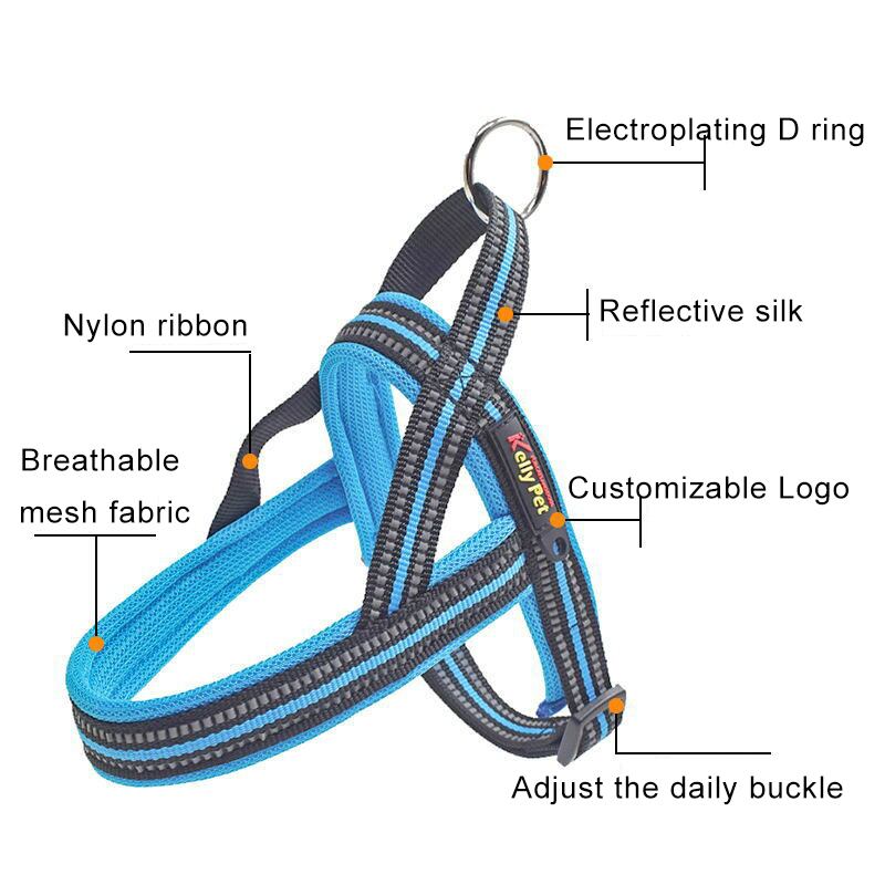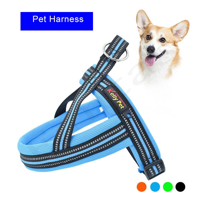 新作 犬用ハーネスベスト調節可能な反射性通気性メッシュナイロン犬用ハーネス中型大型犬用胸バンドペットアクセサリー