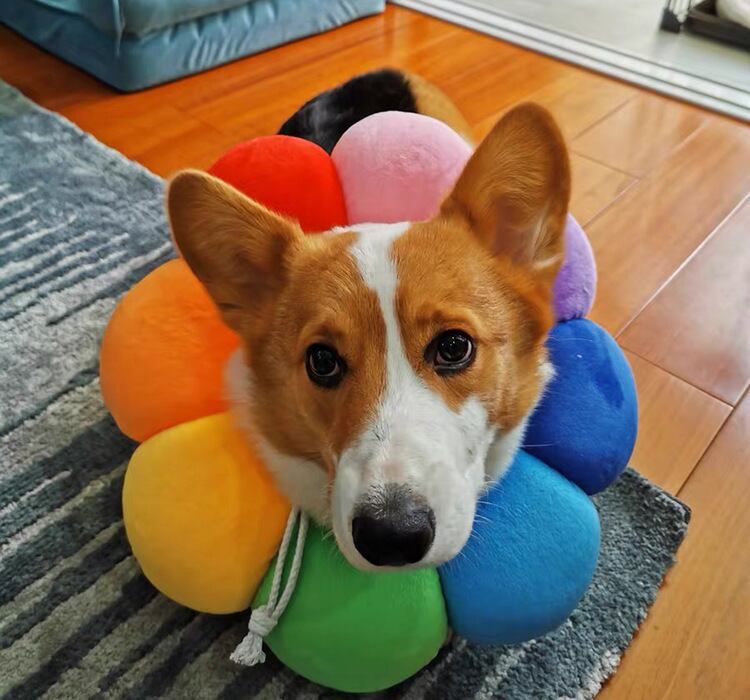 新作 ペットのおもちゃ小さなFardou-コーギー犬/猫ひまわりヘッドギアフリース猫人形ペットファンキーひまわり小道具ペット用品