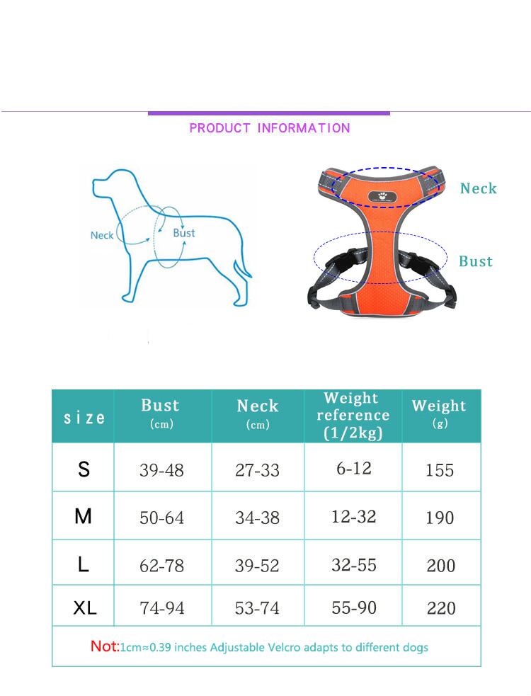 新作 反射ペットハーネス小中大型犬用チェストストラップベストハーネス通気性のあるOxd犬用ハーネスベストペット用品