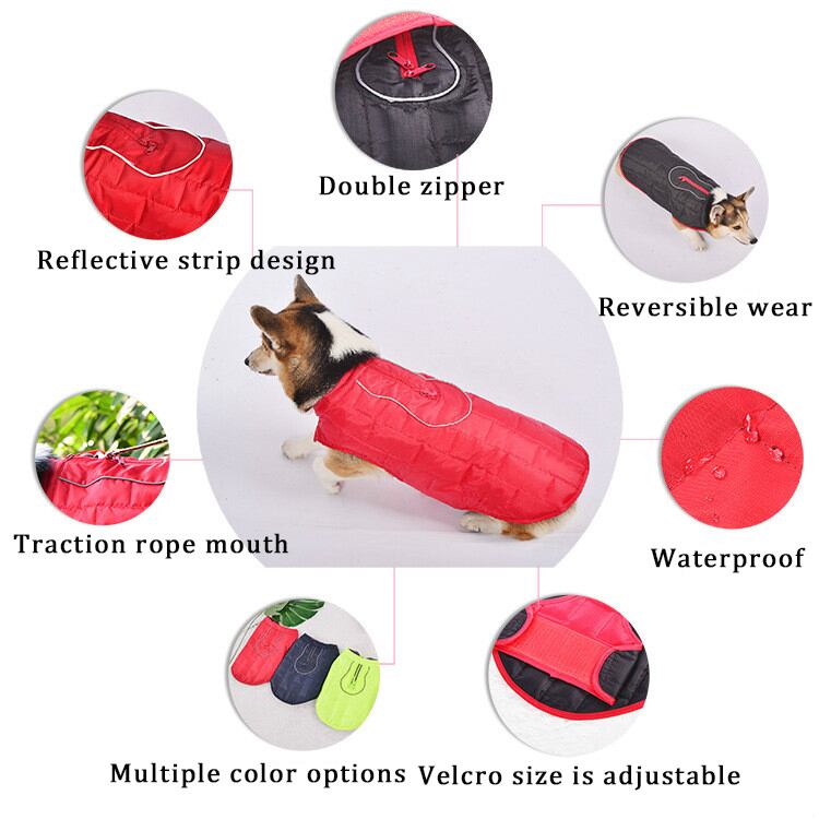 新作 ペット服秋冬犬ジャケット暖かいコートジャケットペット綿パッド入り犬防水ダブル子犬の服を着る