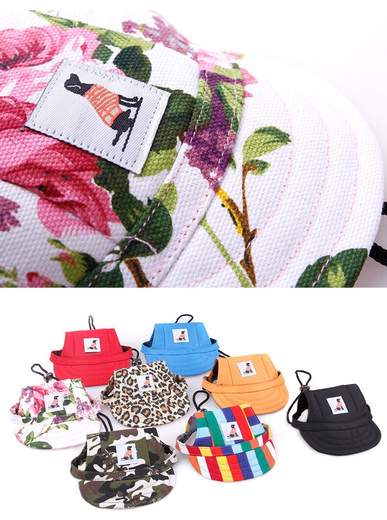 新作 ペットドッグキャップベースボールバイザーハット小さな子犬ペットプリントキャップドッグアウトドアアクセサリーサンボンネットキャップポリエステルペットハット