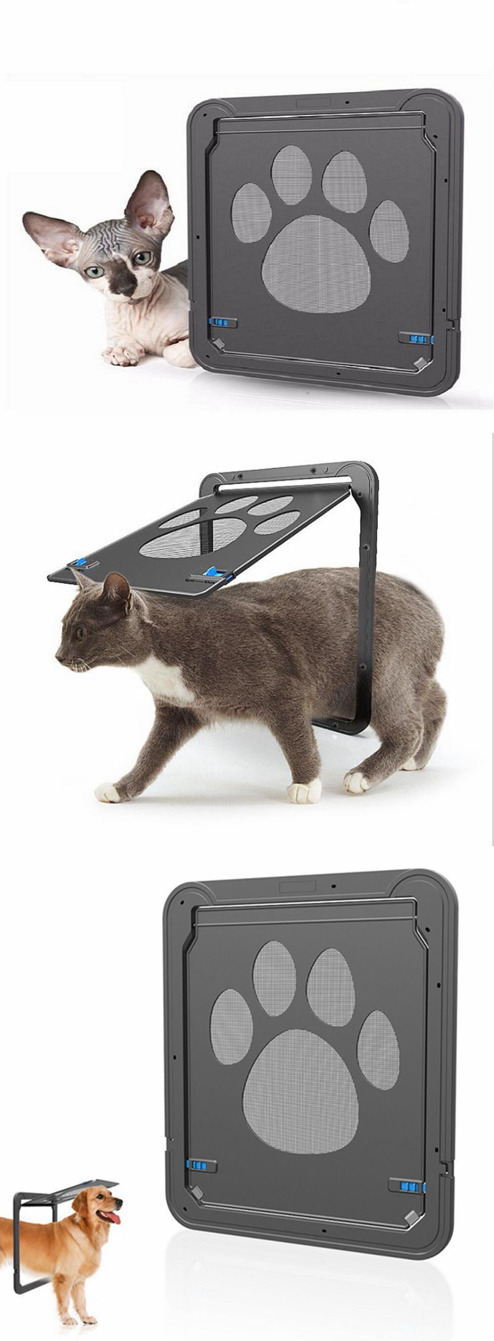 新作 セキュリティロック付き犬猫フラップドアフラップドア犬猫子猫ABSプラスチック小型大型ペットゲート犬穴猫犬フラップドア