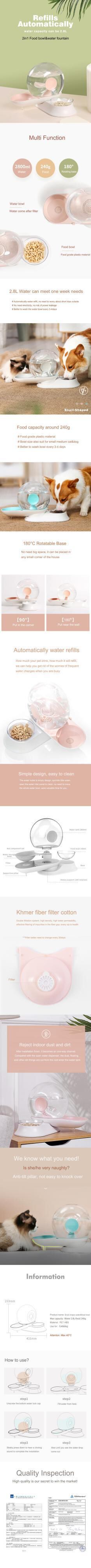 新作 ペットボウル自動給餌犬猫フードボウルウォーターディスペンサー付き水を飲むコンテナ商品猫犬ペット用品