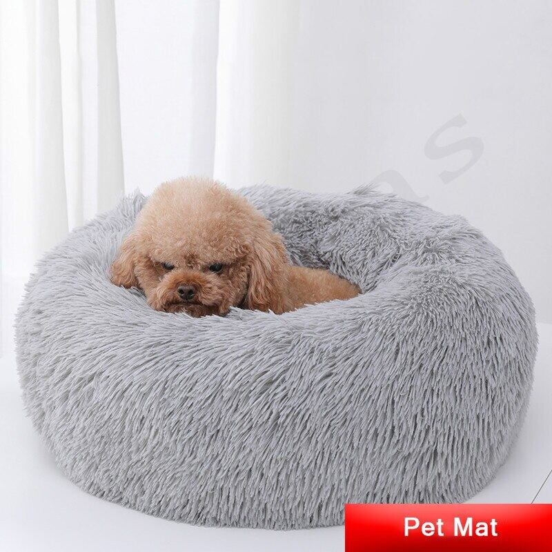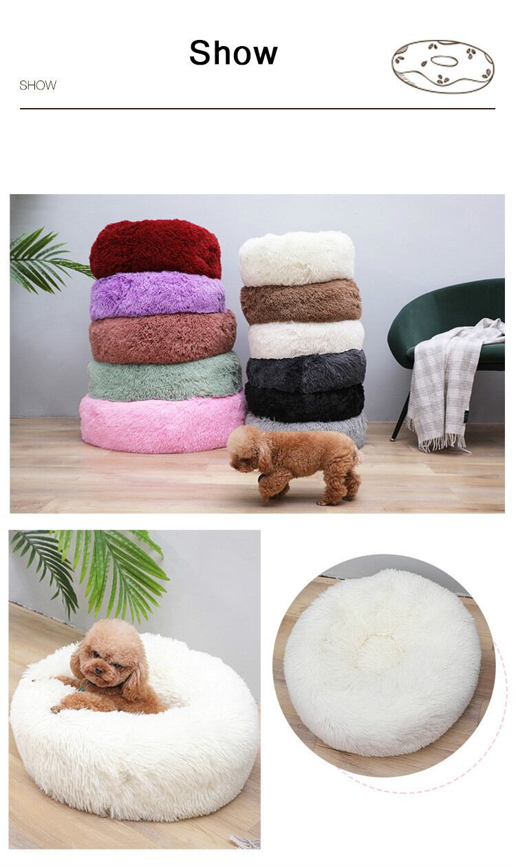 新作 犬ペットベッド犬小屋ラウンドキャットウィンターウォームロングぬいぐるみスーパーソフトペットベッド犬小屋スリーピングバッグ子犬クッションマット猫用品