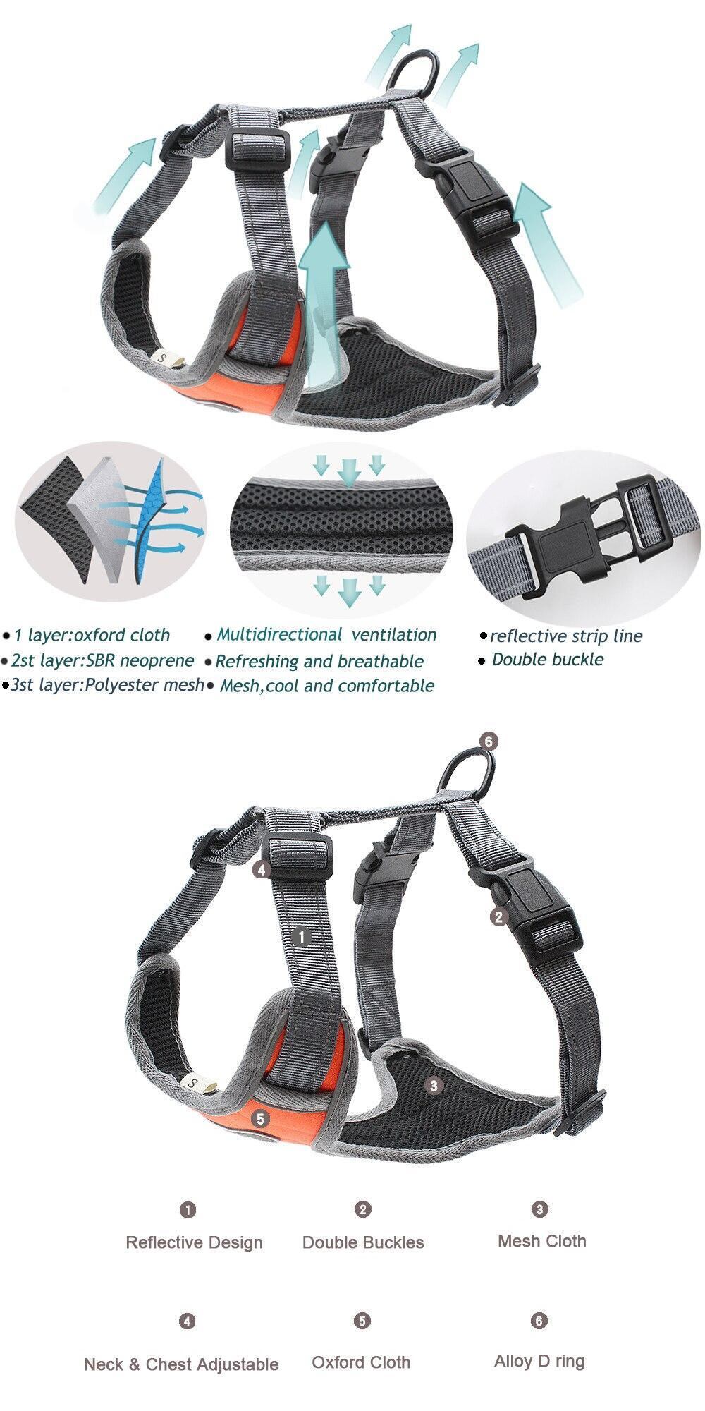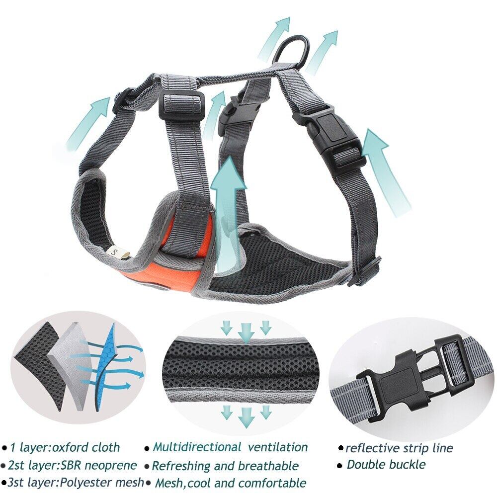 新作 大型犬用ハーネスプルなし反射クイックリリースハーネス大型犬用ナイロンハスキーベストハーネス犬用中型子犬用ハーネス