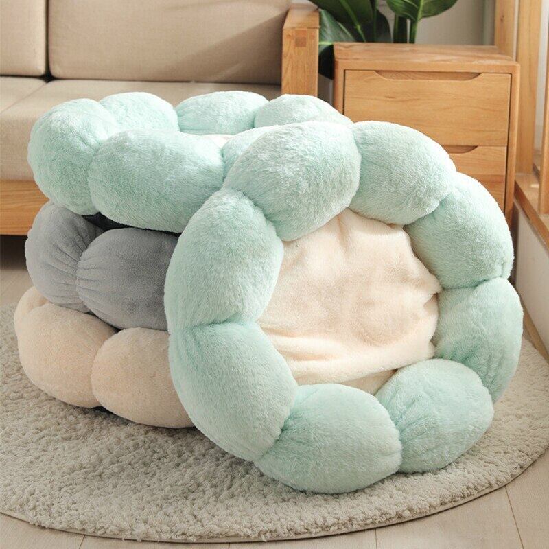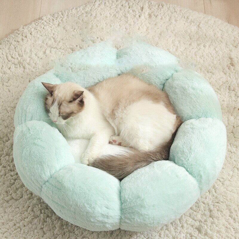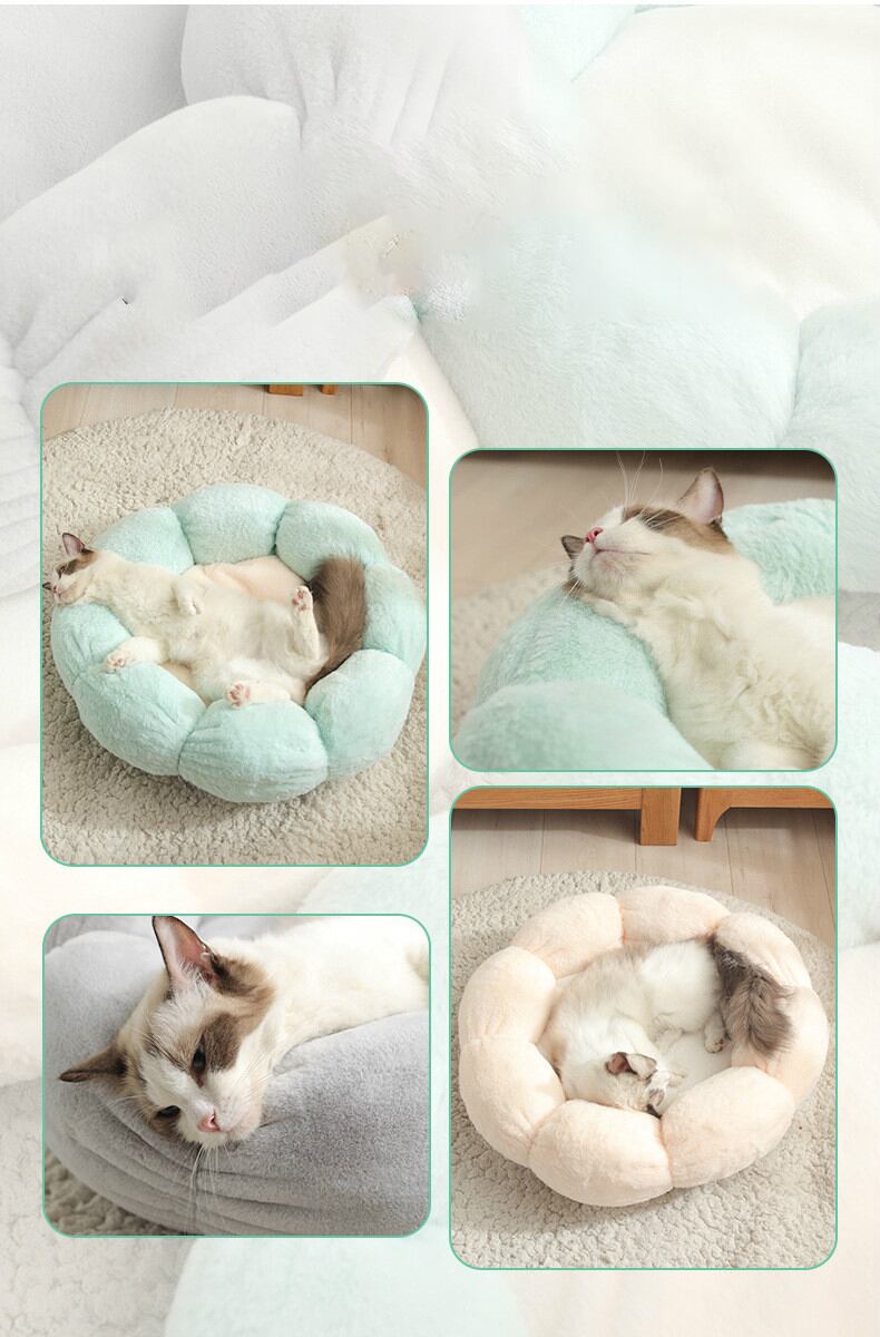 新作 冬のペットハウスふわふわラウンドネストフラワードッグSftベッドハウスキャットウォームディープスリープラウンドウォッシャブルクッションハウスキャットベッド