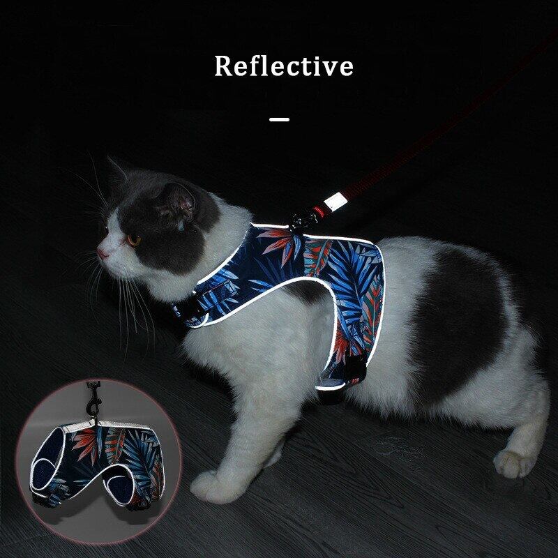 新作 反射猫リーシュベストタイプハーナーセットプリントアンチエスケープパーソナライズされた猫製品ペット用品