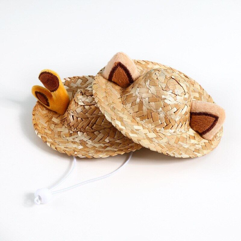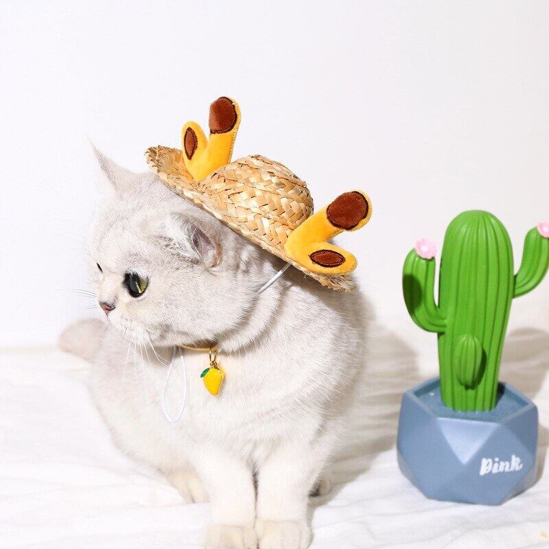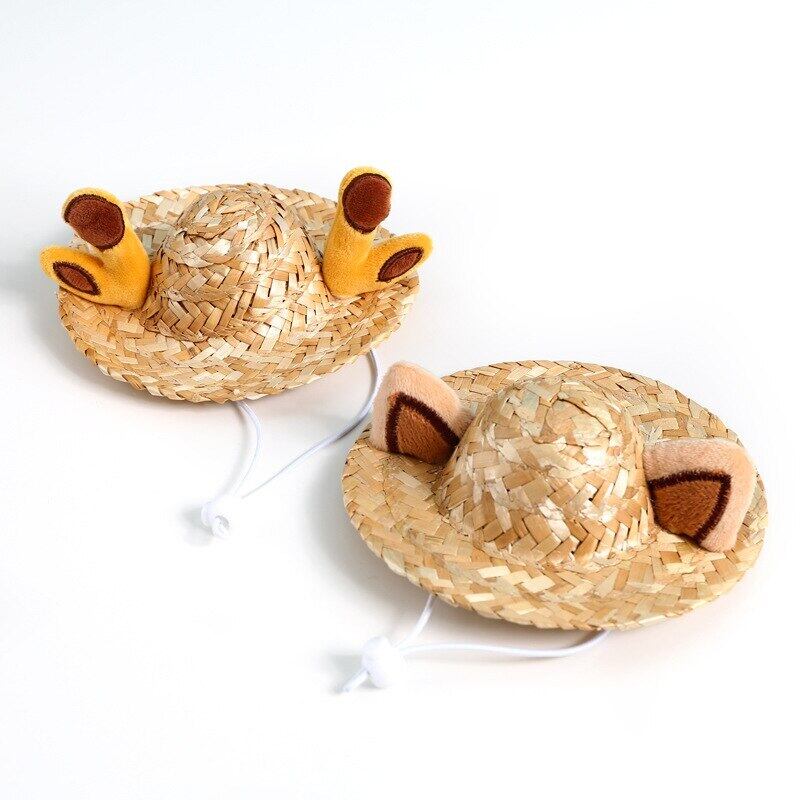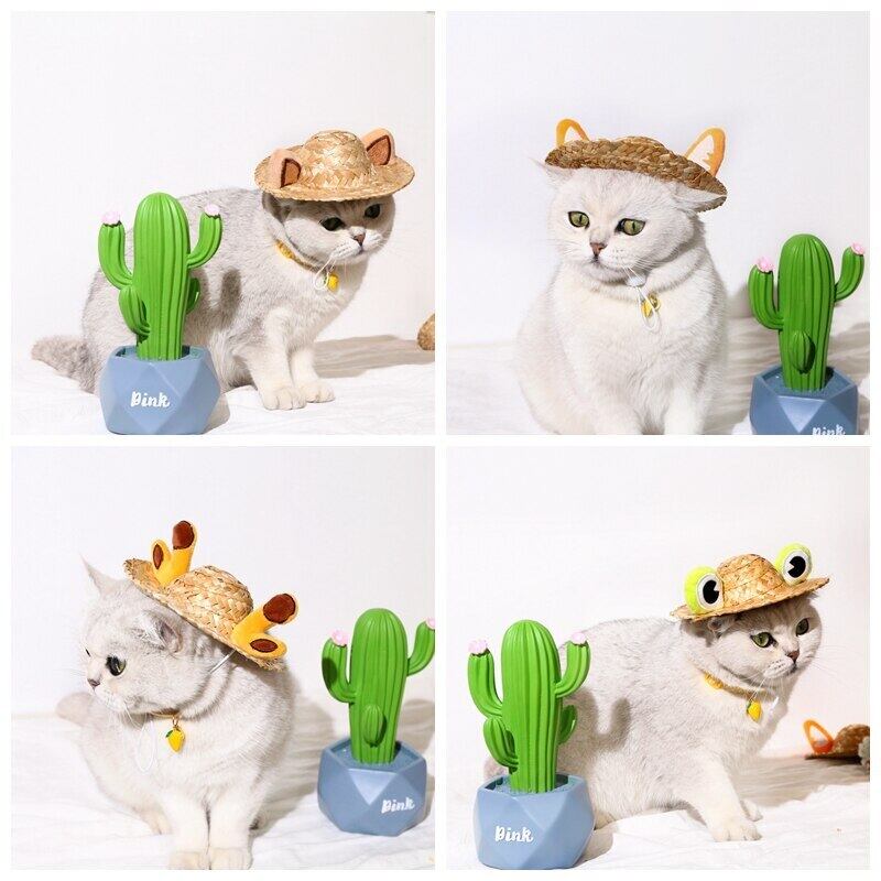 新作 ハワイアンスタイルペットドッグキャットキャップ通気性サマーサンハットハットスモールミディアムドッグキャッツキャップペットソンブレロハットキャットガトス