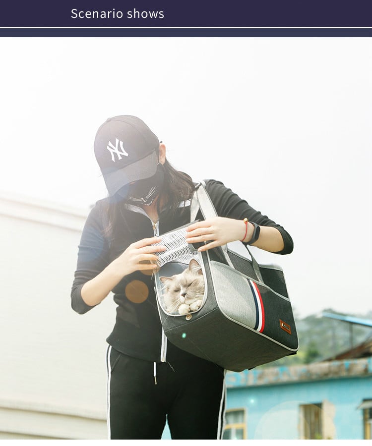 新作 Fahshion通気性メッシュペットバッグビッグスペースキャットキャリアアウトウォーキングドッグバッグポータブルキャットハンドバッグペットキャリアバッグ