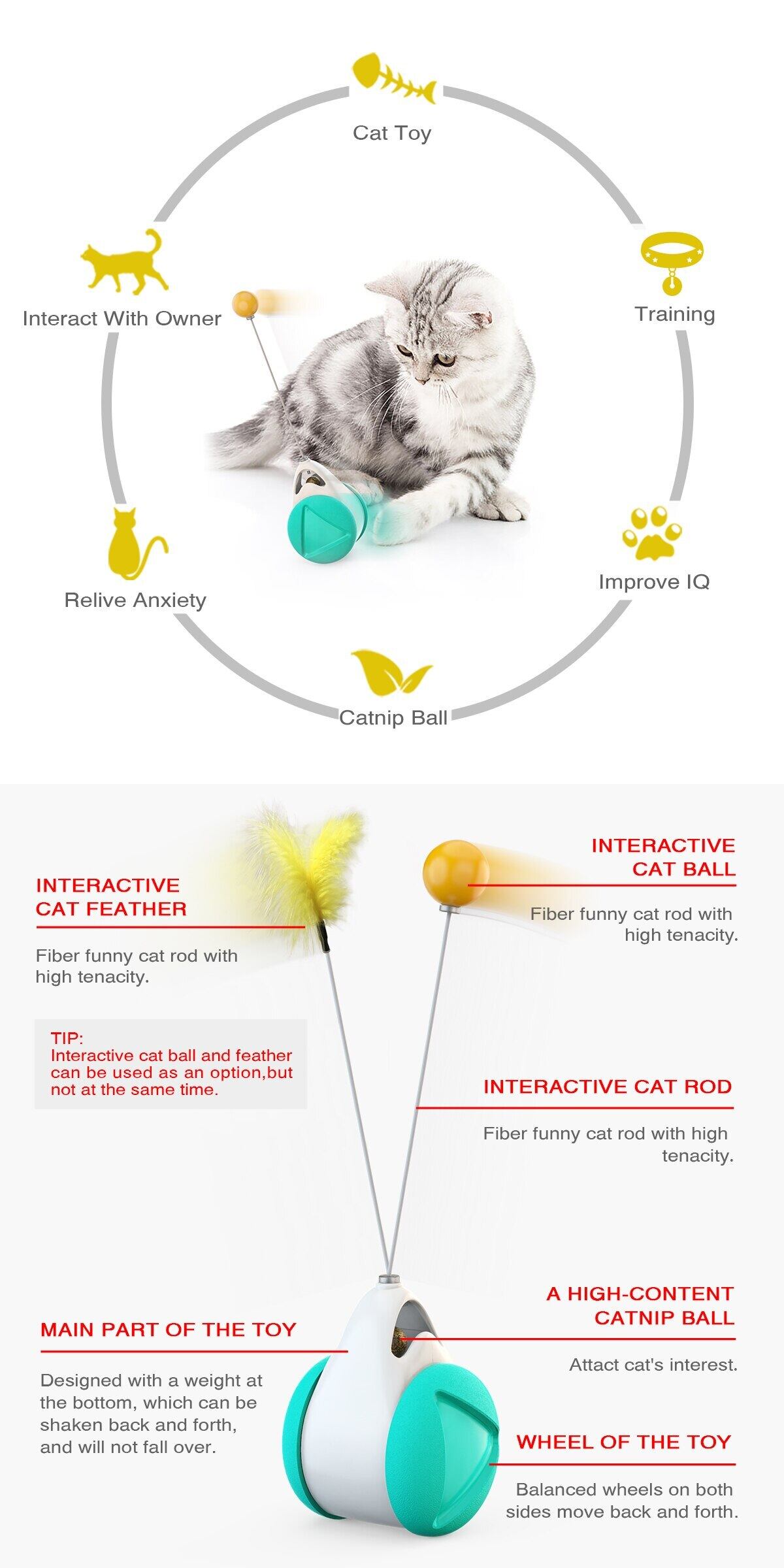 新作 ペットのおもちゃスマートインタラクティブ自動回転猫おもちゃボールキャットニップ猫不規則な回転ティーザーおもちゃ猫カッテンSpeelgoed