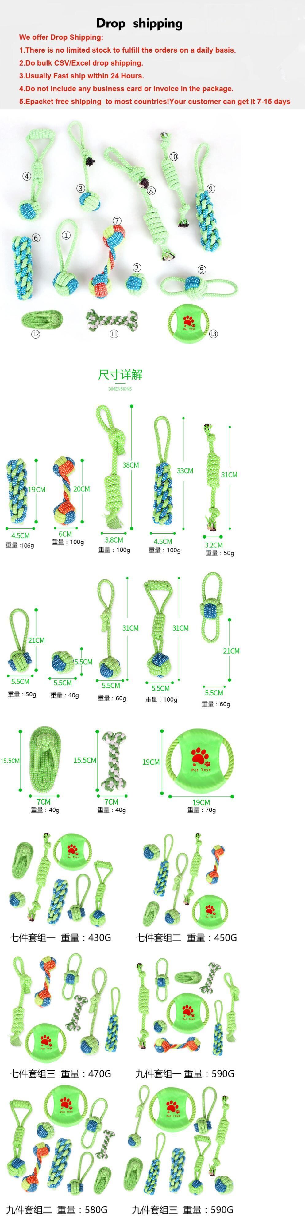 新作 7/9/13パック犬のロープのおもちゃの噛むおもちゃ子犬の中型および大型の品種のチューワー、ボールタフな歯が生えるロープの引っ張り犬の噛むおもちゃ