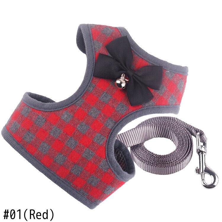 新作 チェック柄ペットリーシュチェストストラップスーツベストリーシュベルキャットとドッグチェーンドッグハーネスとリーシュセット小型犬用ハーネスセット