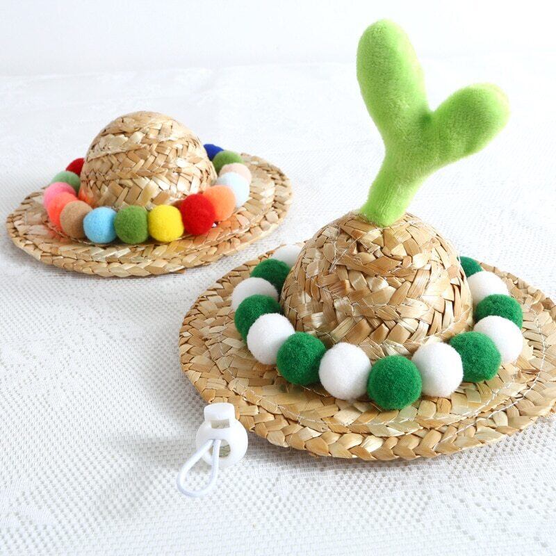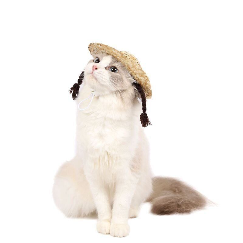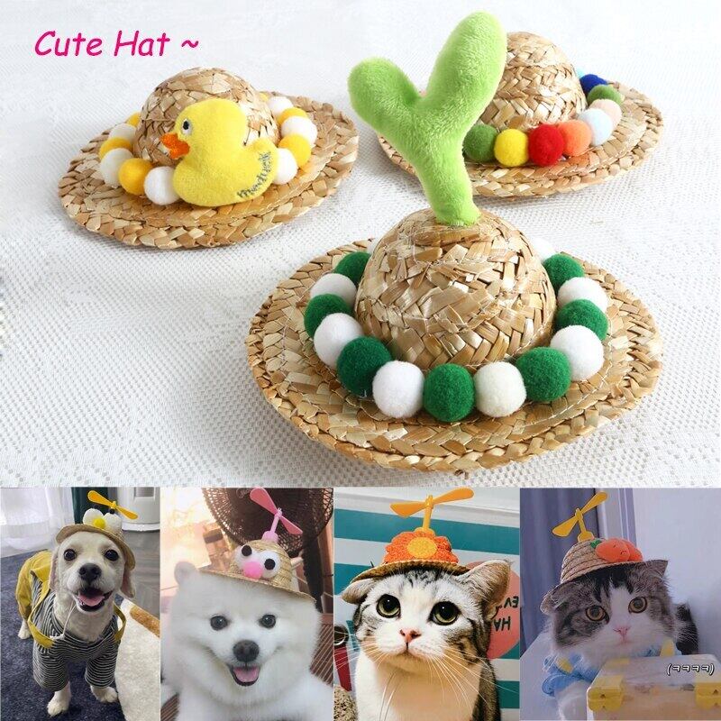 新作 かわいい犬の猫サンハットビーチパーティー麦わら帽子ペットの装飾猫犬のポグラフィー小道具クールな楽しい竹トンボ帽子ペット用品