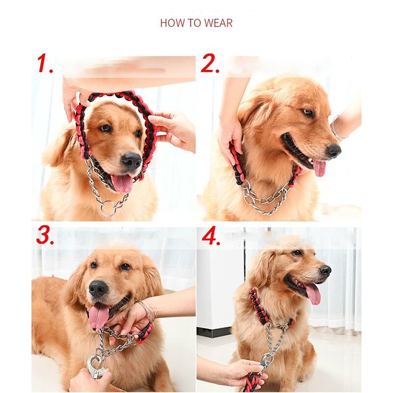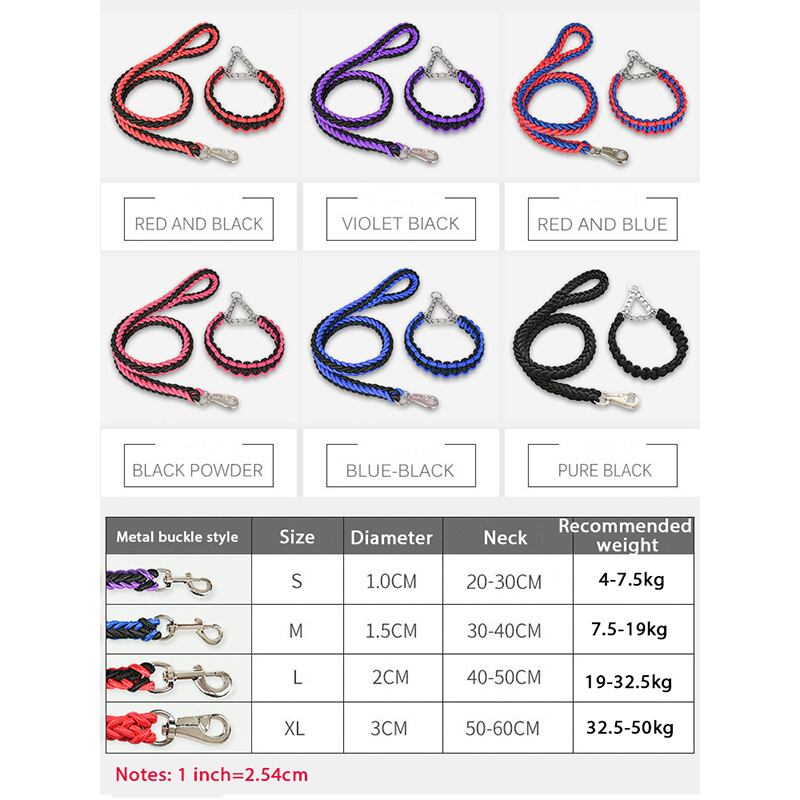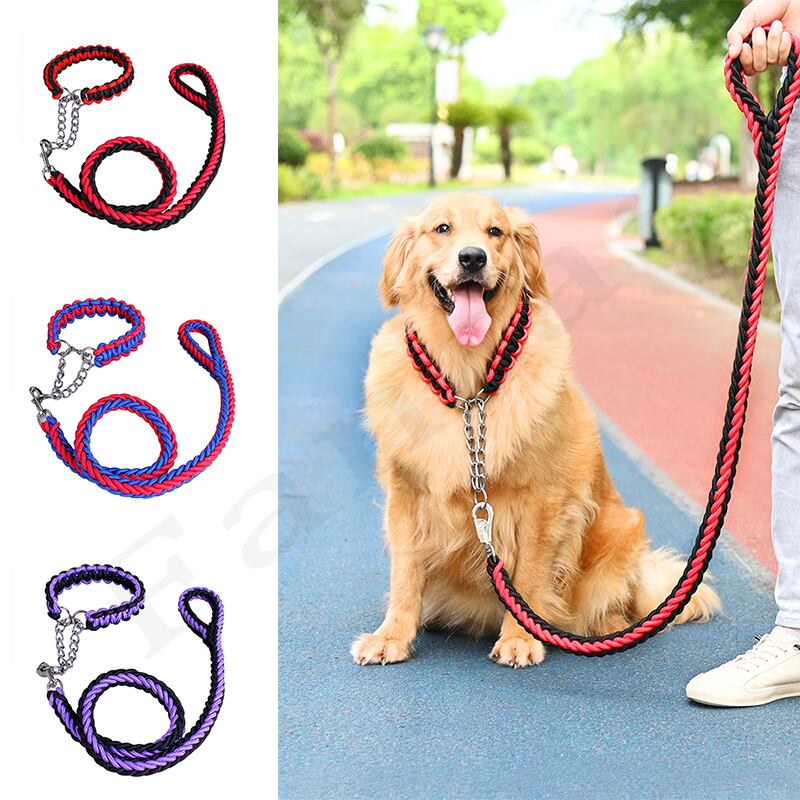 新作 1.2mの長さの犬の金属Pチェーンの爆発-プルーフラッシュドドッグリーシュとカラーセットトレーニングペットトラクションロープカラーセット犬用品