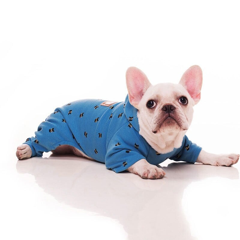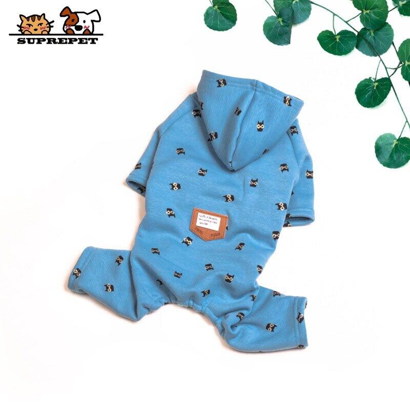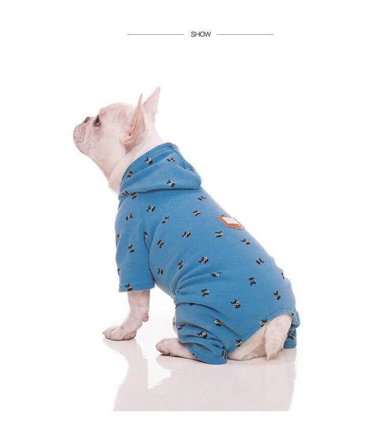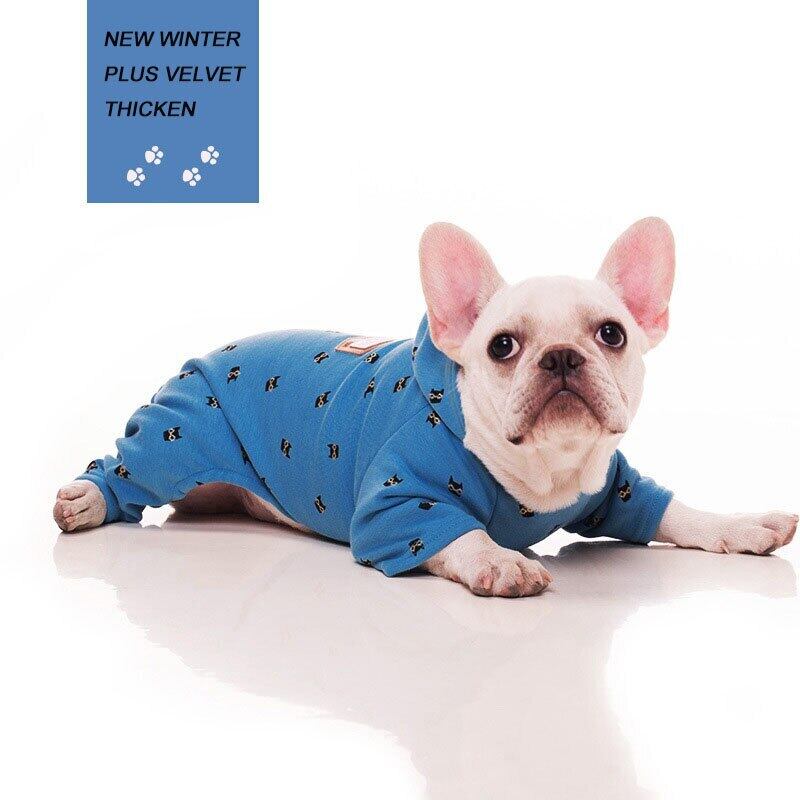 新作 SUPREPETウォームソフトドッグ服ウィンタープラスベルベットシックンパピー4本足パーカープリントコートフレンチブルドッグ 冬物