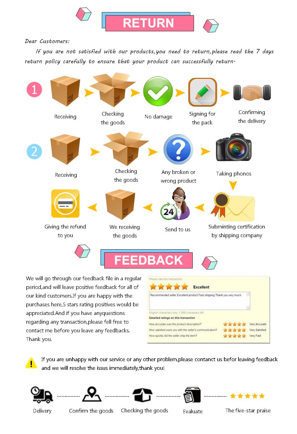 商品に欠陥がある場合をのぞき、基本的には返品には応じません。