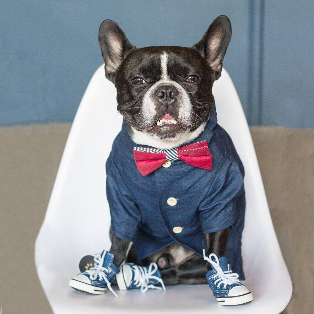新作 SUPREPET犬の服秋のデニムの子犬のシャツレトロなハンサムな犬フレンチブルドッグのペットは子犬のスーツを緩めます オータム 秋物