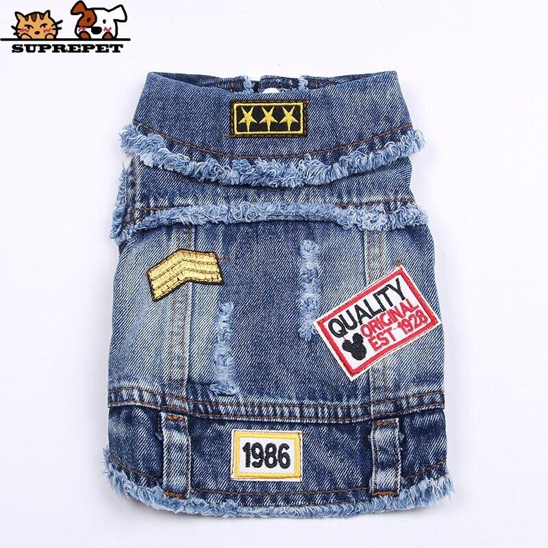 新作 SUPREPETドッグジーンズジャケットかわいいブルーデニムコートベストペットパピー服アパレルフレンチブルドッグ服発送 大人ガーリー スウィート キュート カジュアル