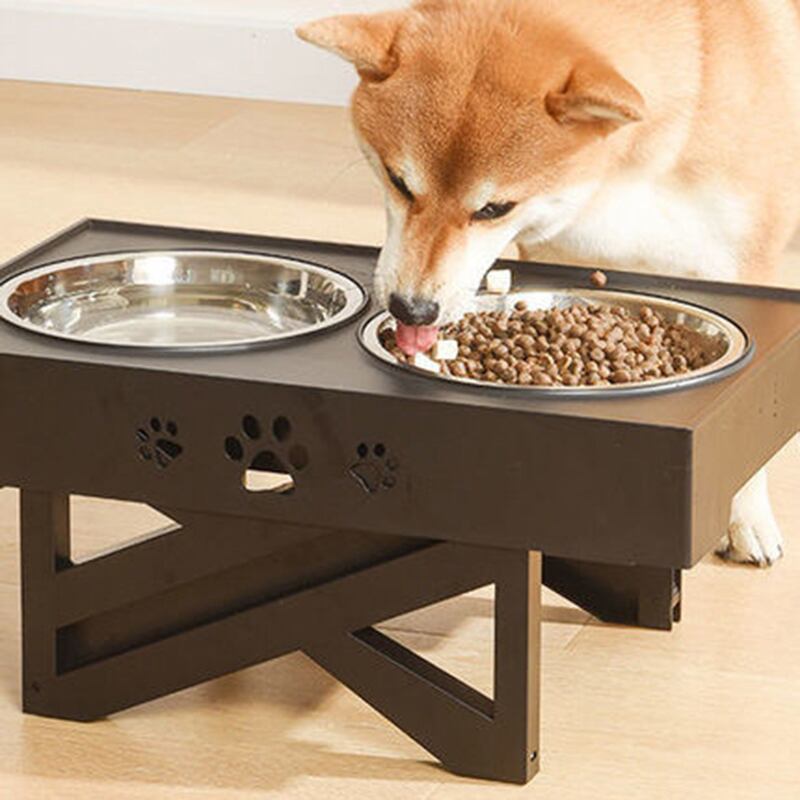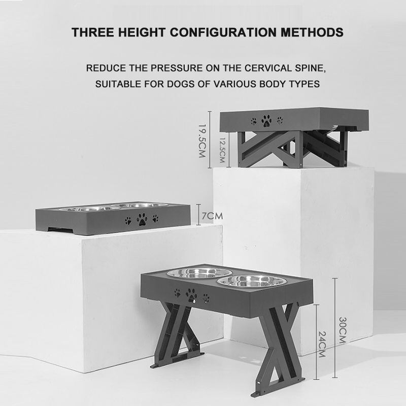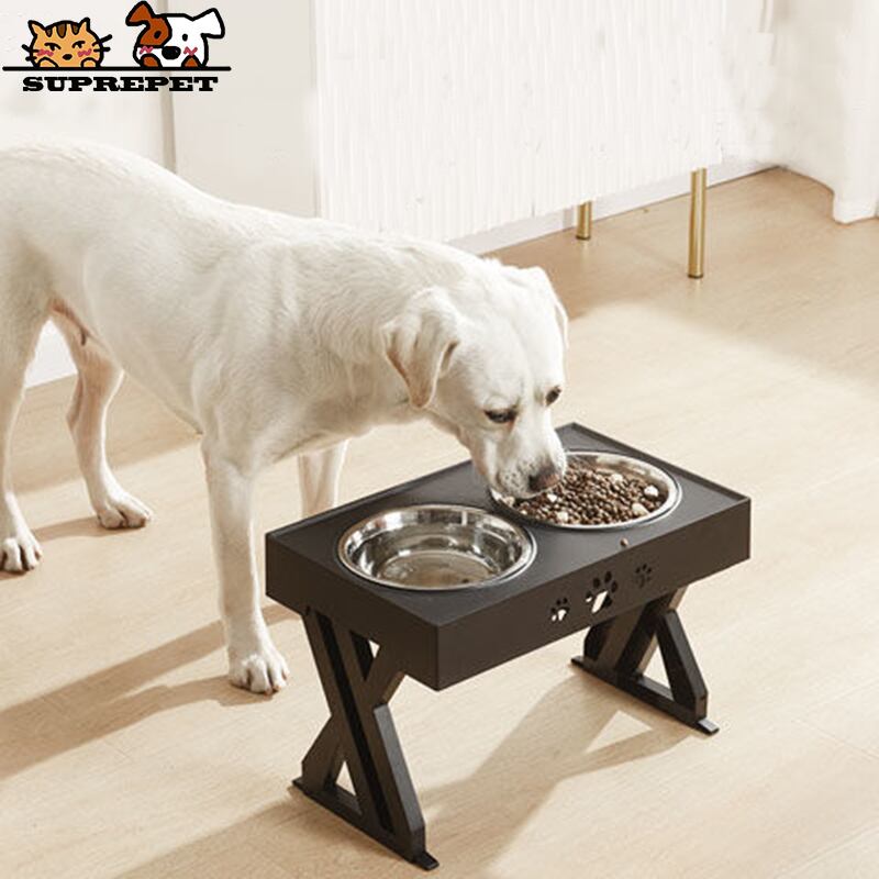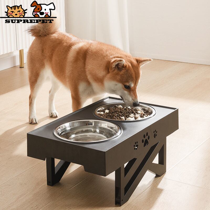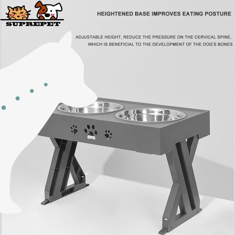 新作 SUPREPET犬用ダブルボウル調節可能な高架式ダイニングテーブルステンレスペット転倒防止フィーダーは頸部ボウルのウォーターボトルを保護します リボン アジャスタブル