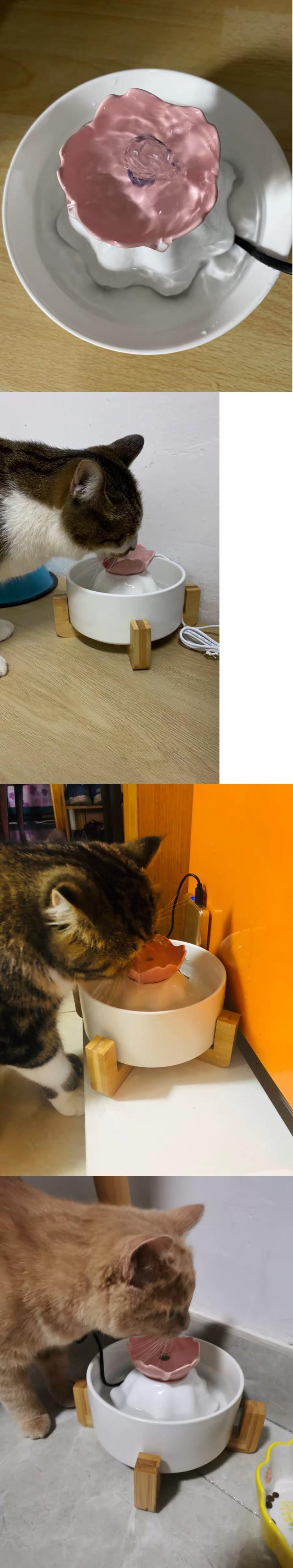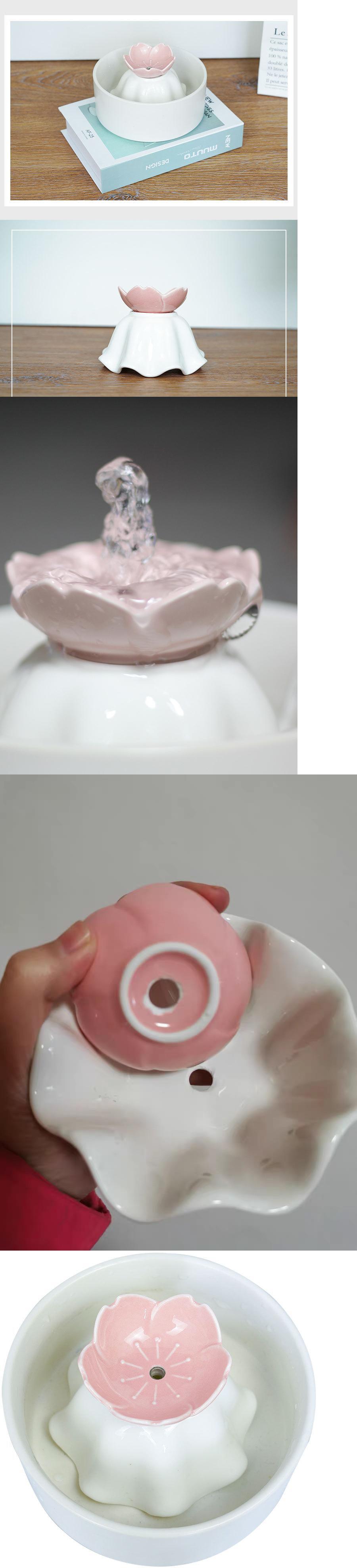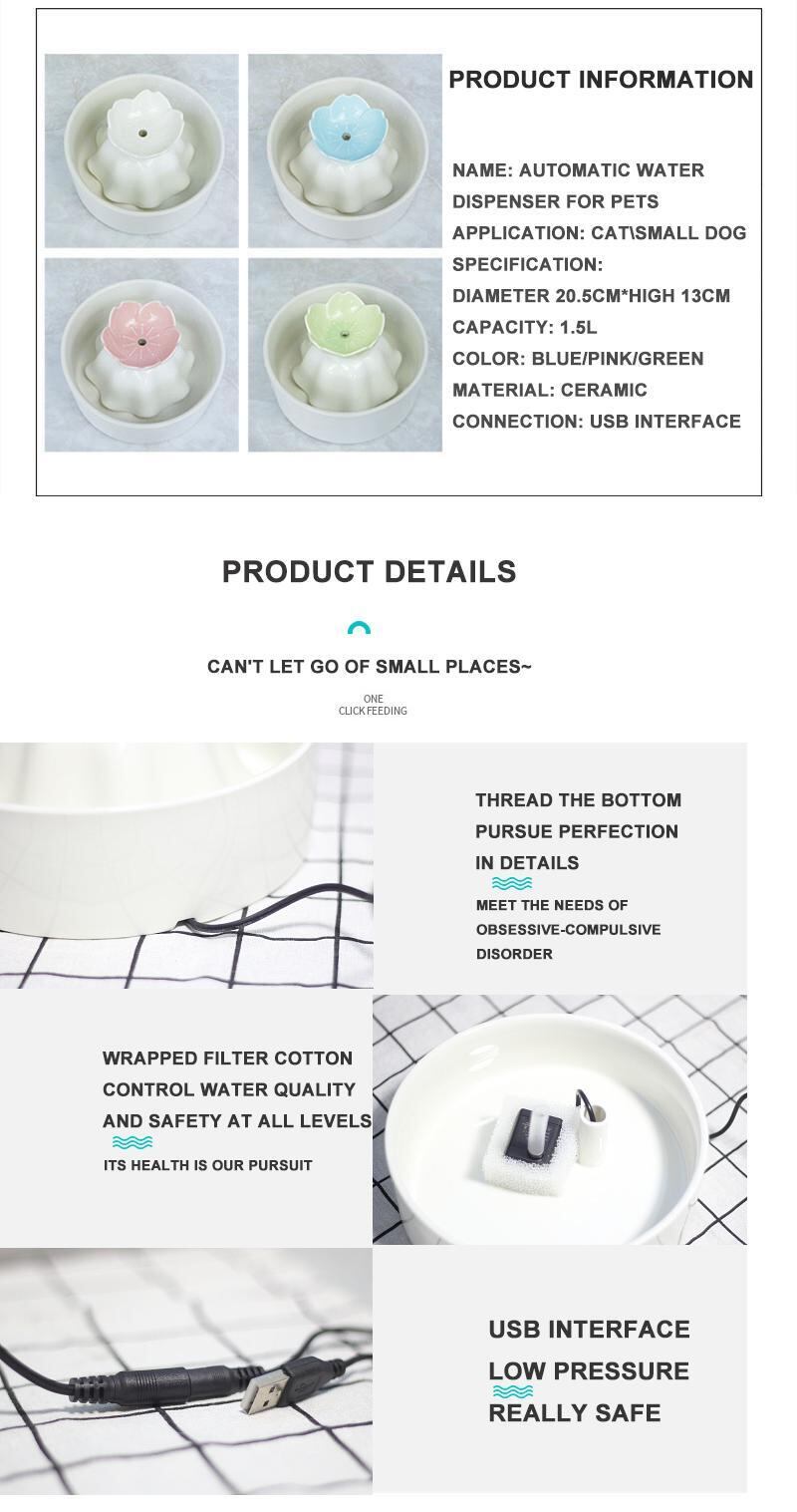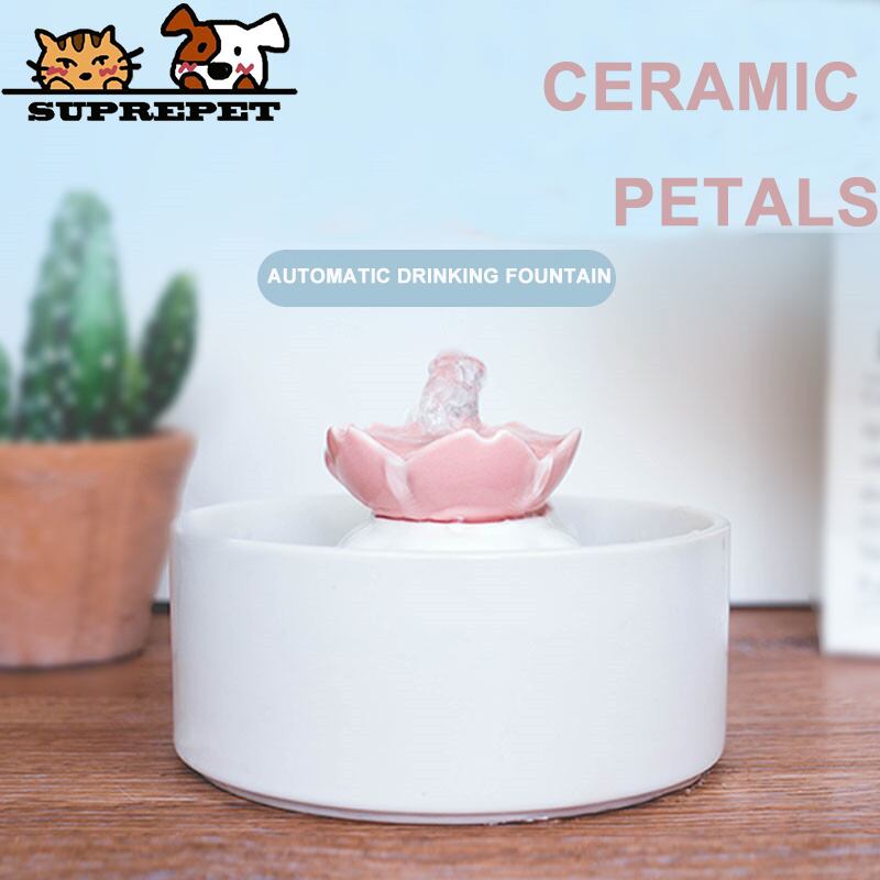 新作 SUPREPETセラミック水飲み場猫用給水器自動ペットフラワードリンカー子犬サイクルフィルターディスペンサー犬屋内用品 リボン フラワーデザイン