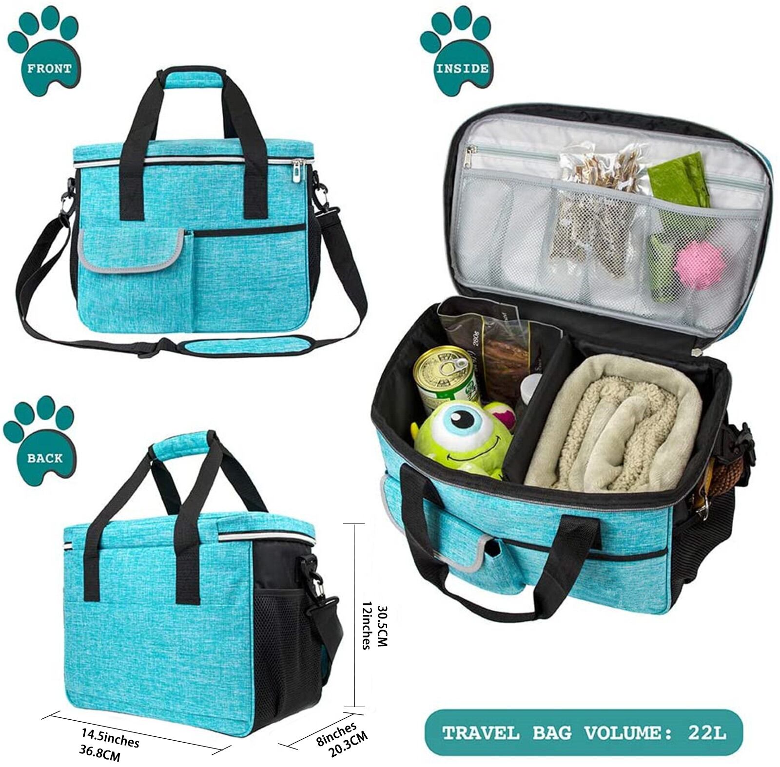 新作 CenKinfoドッグトラベルバッグトートオーガナイザー多機能ポケットペットフードコンテナバッグキャットトラベルバックパックドッグフードソフトキャリア トートバッグ リュック マルチファンクション