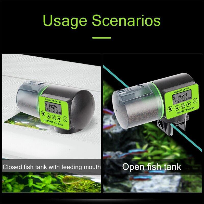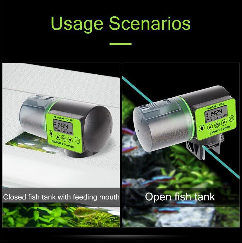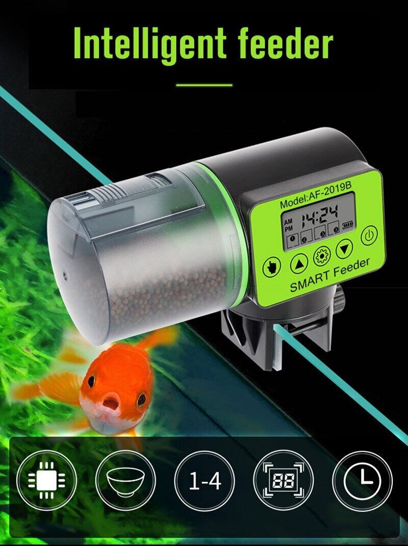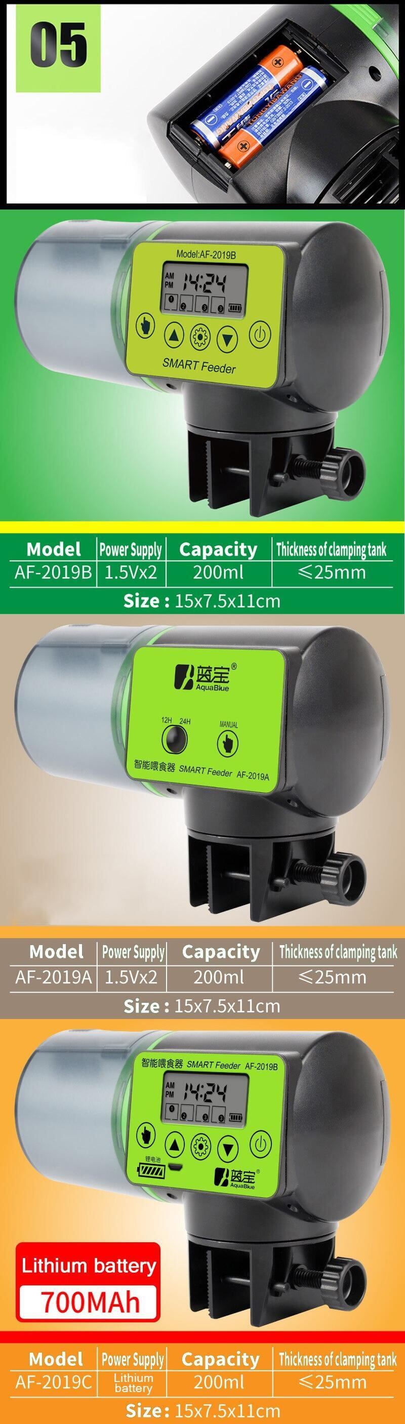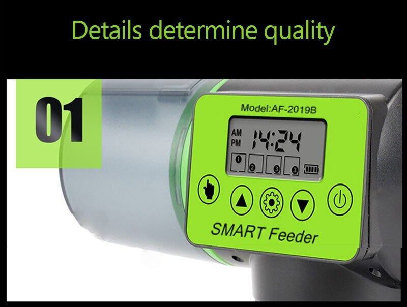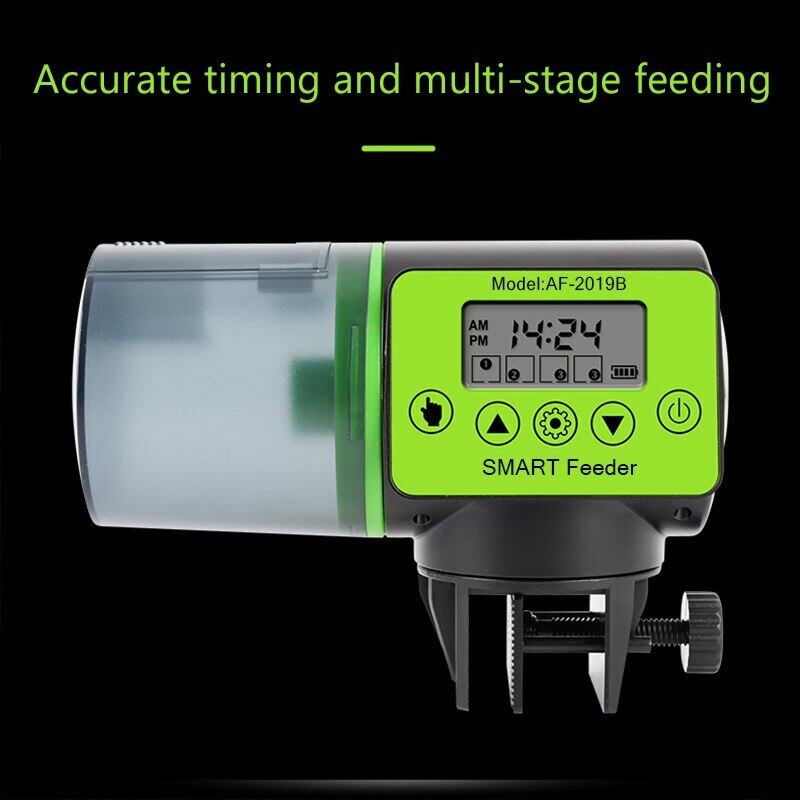 新作 200MLスマート自動魚給餌器水族館給餌器水槽自動給餌ディスペンサーLCD付きタイマー水族館アクセサリーを示します