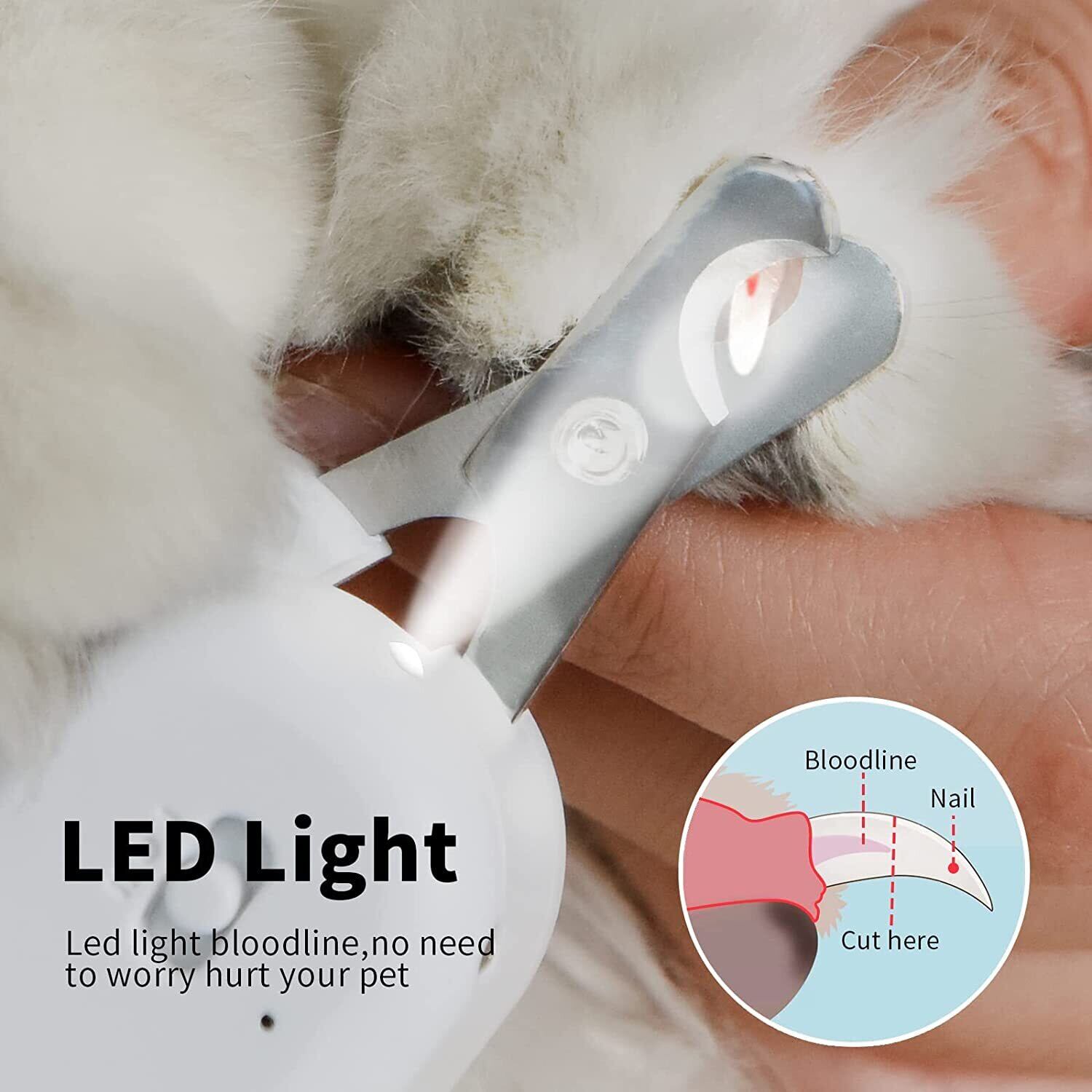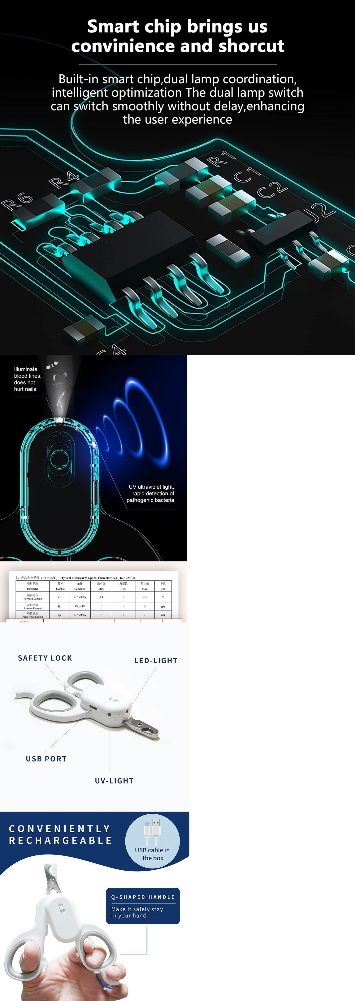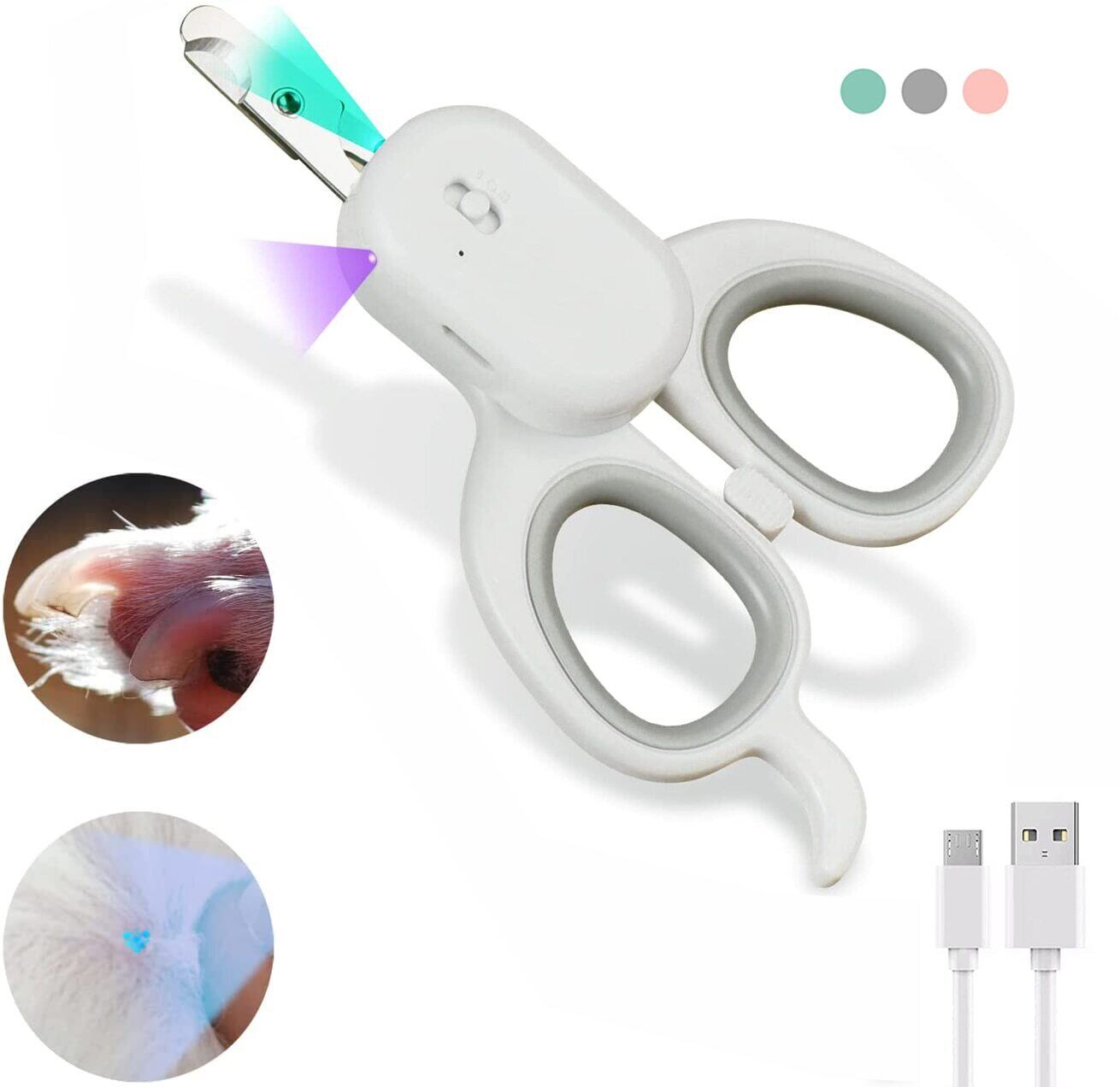 新作 ペットの犬猫の爪切りプロフェッショナルカッターUSBグルーミングクリッパーはさみペットの爪切り猫LED付き犬-UV-ライト