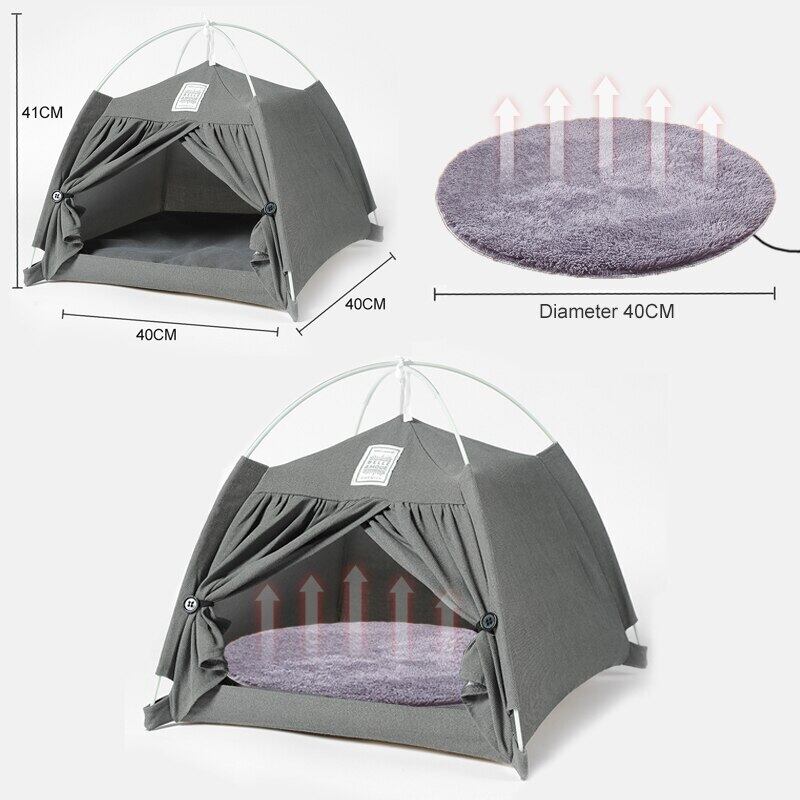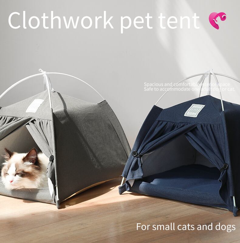 新作 ペットテント洞窟ベッド猫小型犬ポータブルティーピーマット付き子猫子猫犬小屋ハウスコットンリネン取り外し可能なペット製品