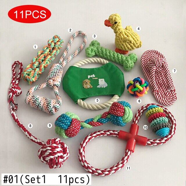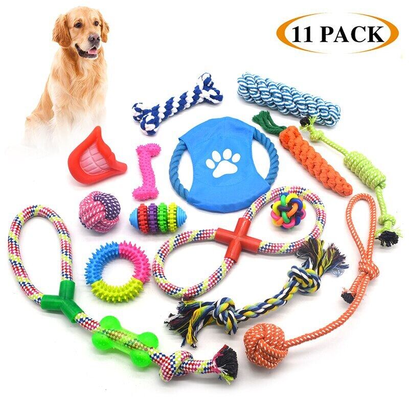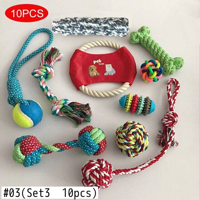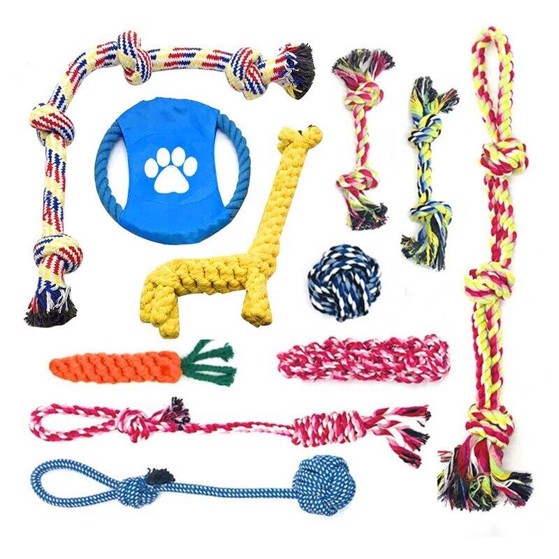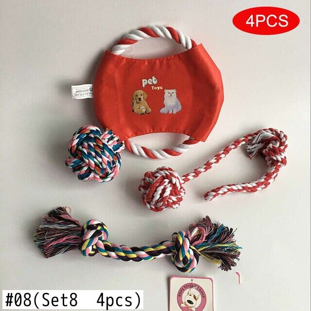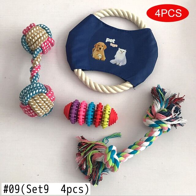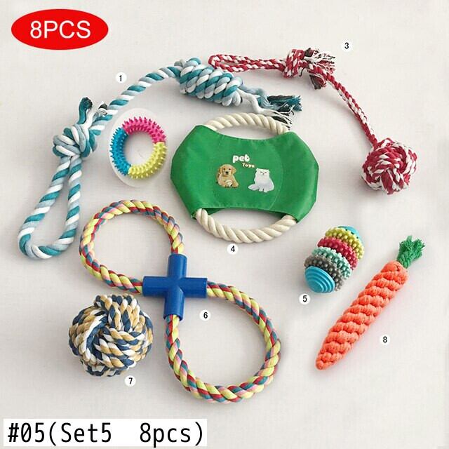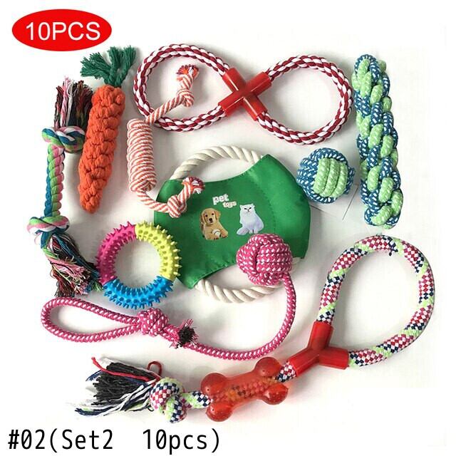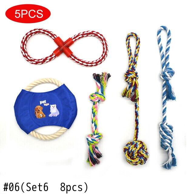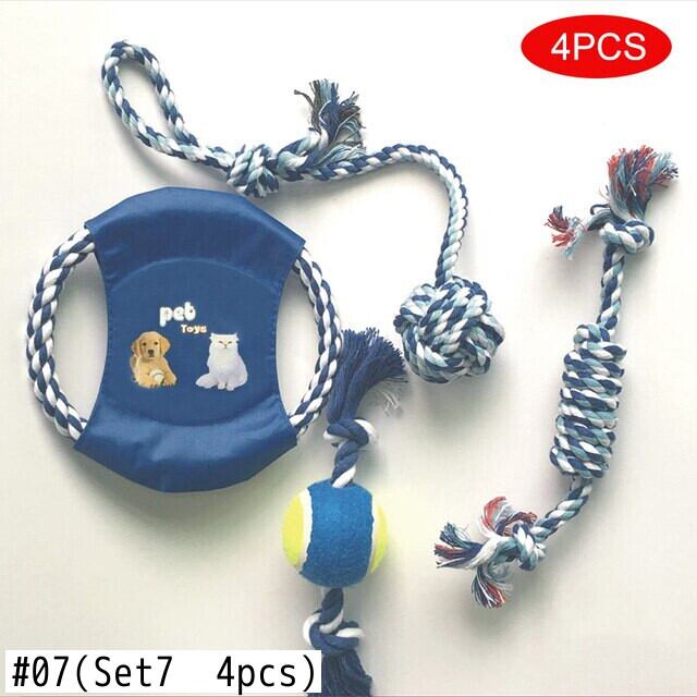 新作 ペットチューおもちゃ子犬犬ロープ綿歯おもちゃセット屋外トレーニングツール犬アグレッシブチューワー洗える犬用品