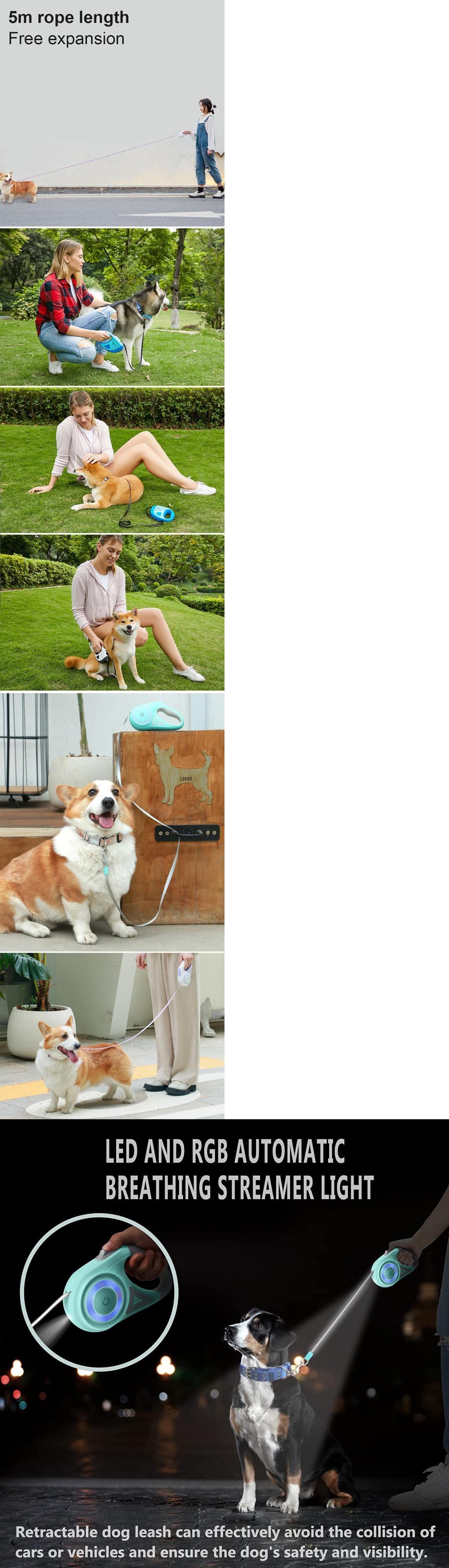 新作 3m/5m耐久性のある犬の猫の鎖自動格納式LED犬の散歩リード子犬の散歩ランニングリードルーレット犬ペット製品