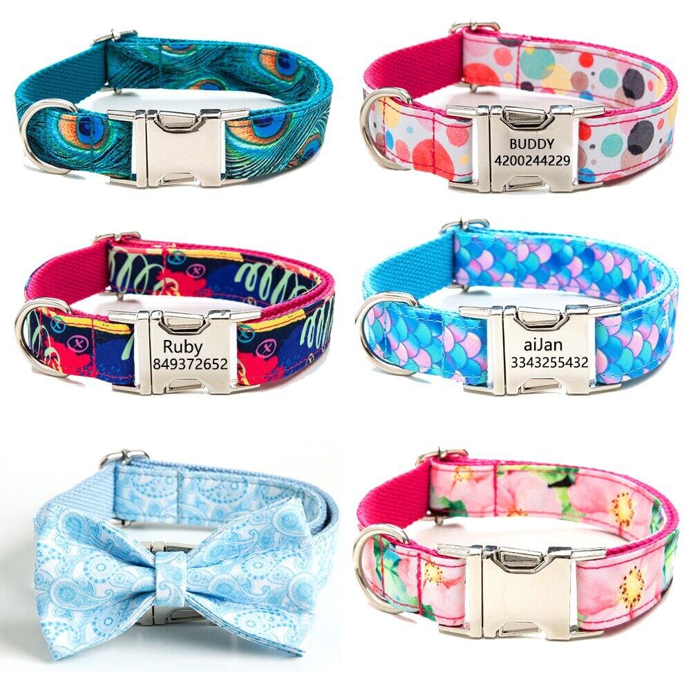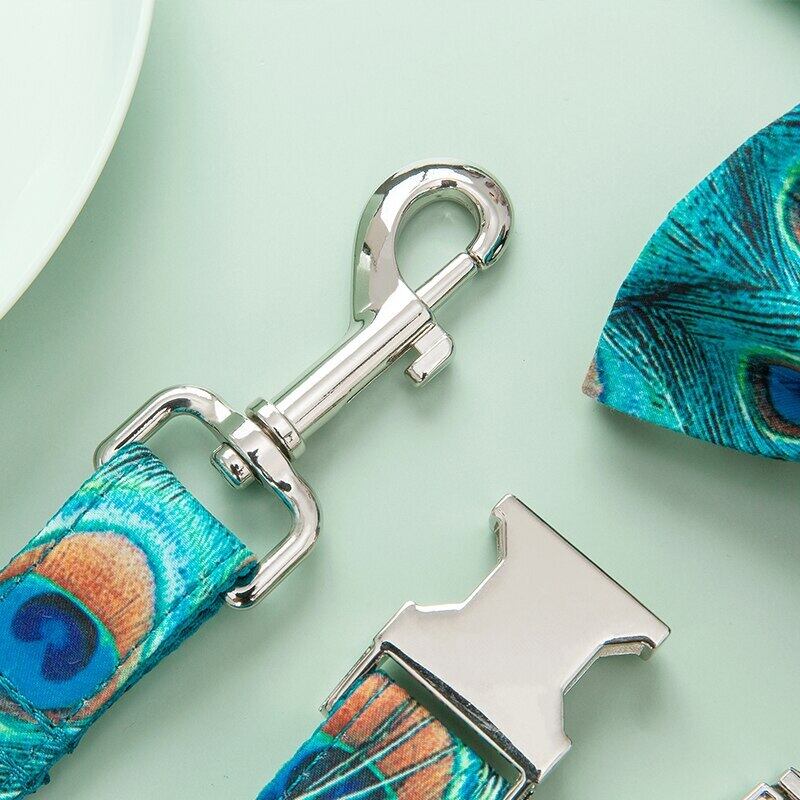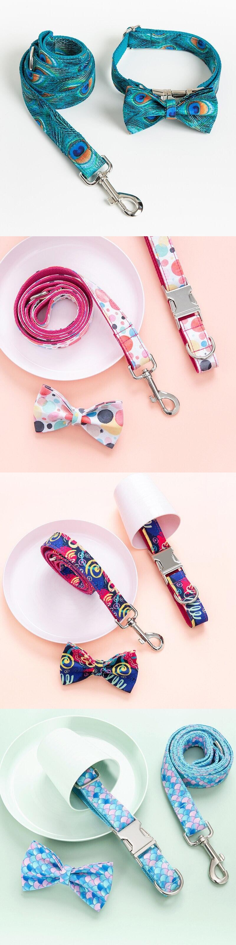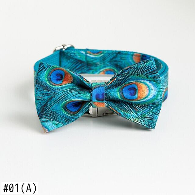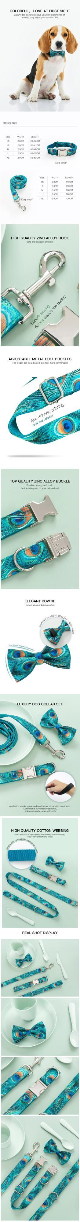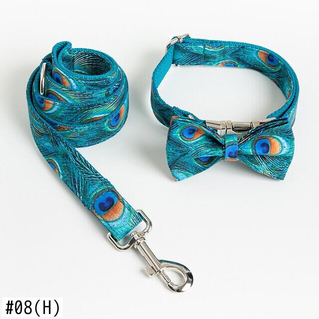 新作 パーソナライズされた孔雀パターンペット犬用首輪牽引ロープセット蝶ネクタイ&リーシュ小型中型犬ペット用品