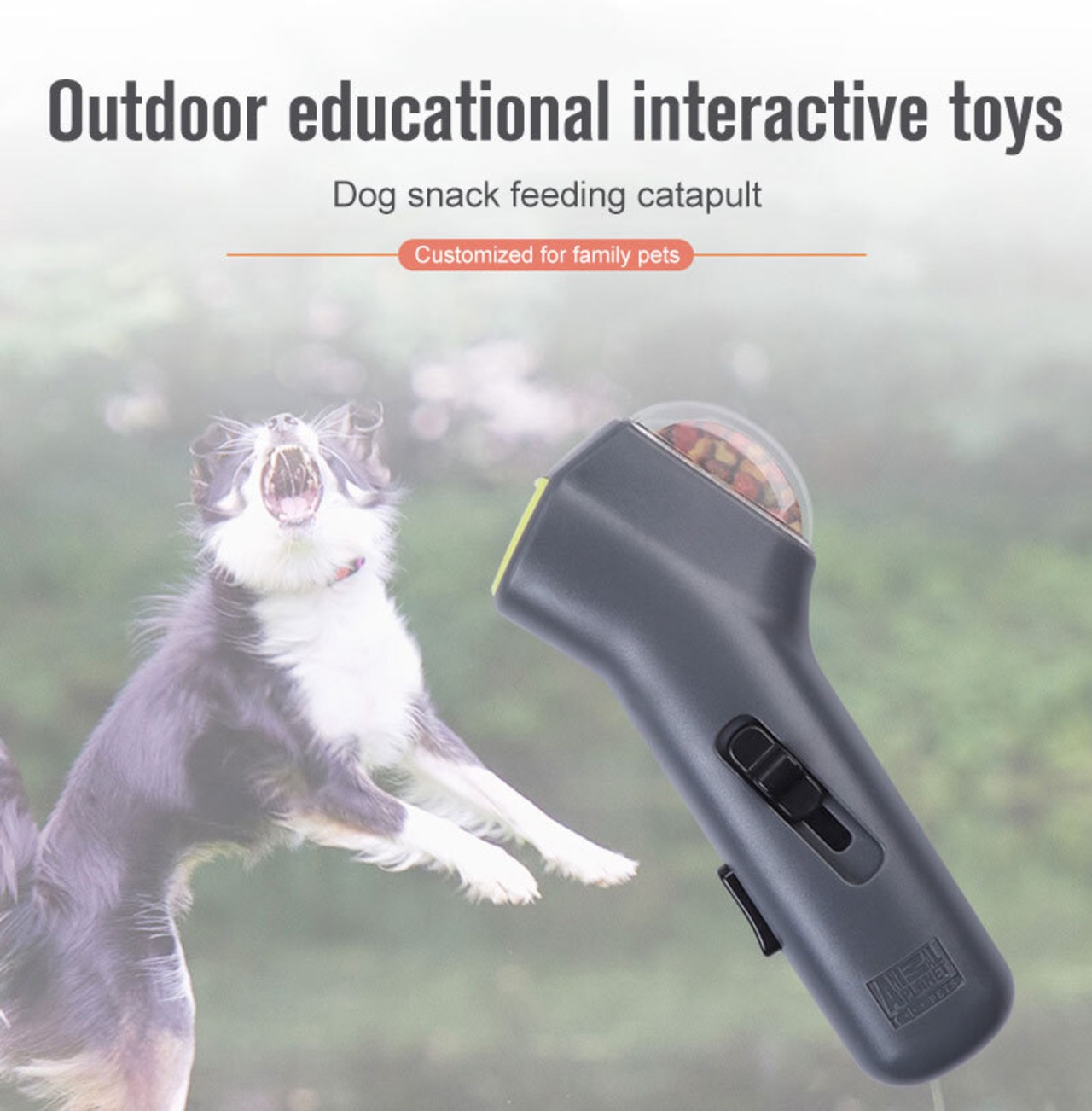 新作 ドッグフードフィーダーフードカタパルト子犬犬猫用おやつスナックランチャーおもちゃディスペンサーハンドヘルドガンインタラクティブIQトレーニング子犬のおもちゃ