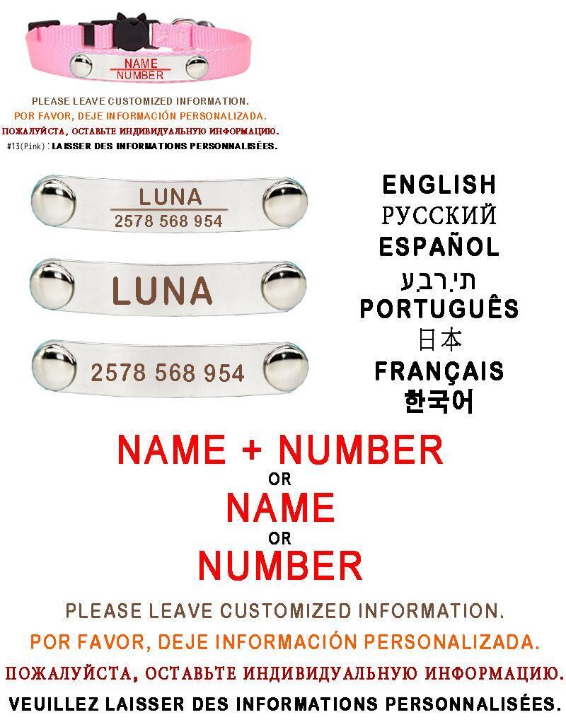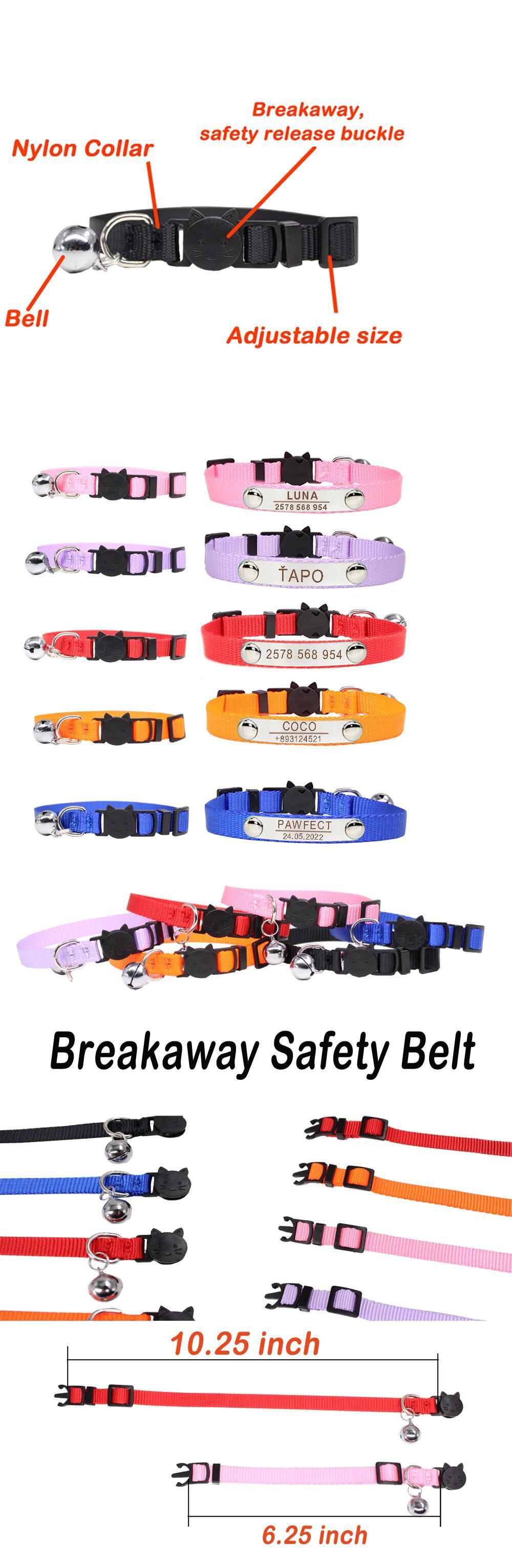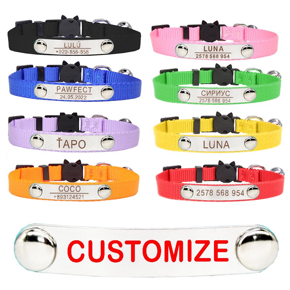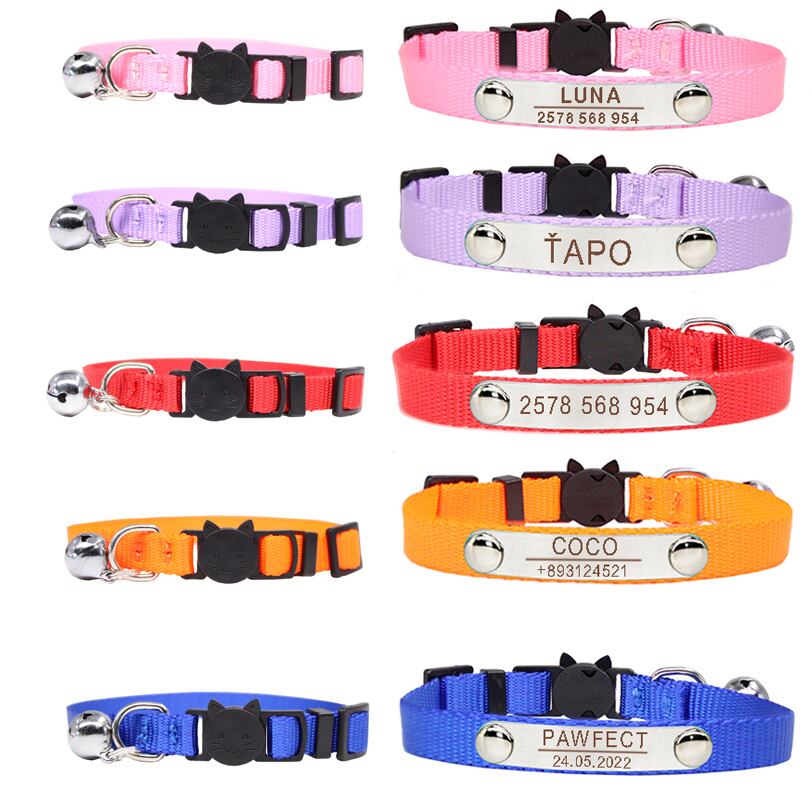 ペット ID 猫の首輪 ステンレス鋼 パーソナライズされた小型犬 カスタムネームプレート タグ 安全離脱首輪 アクセサリー 子犬