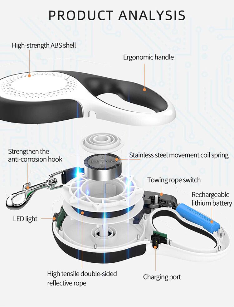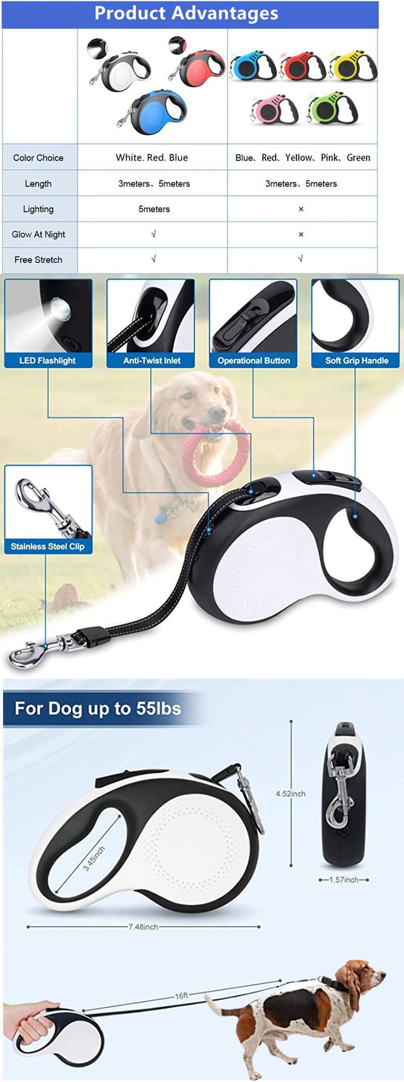 5 メートルの Led ライト格納式ペットリード犬のリーシュ牽引ロープベルト耐久性のある大型犬猫散歩ランリーシュ自動延長リード