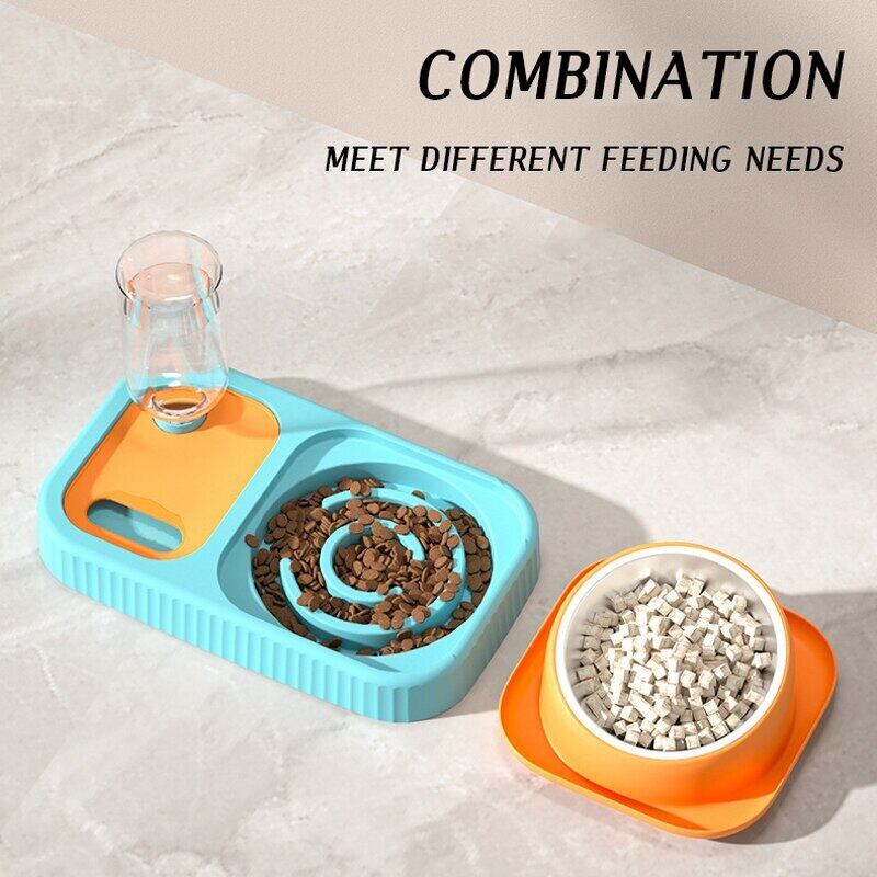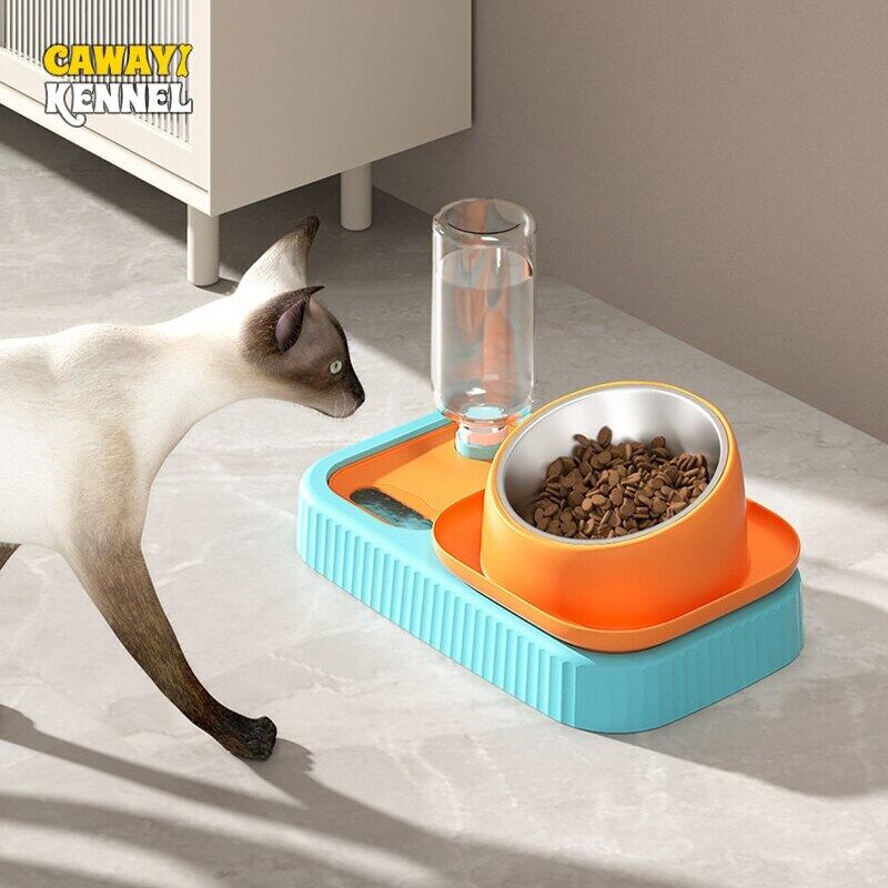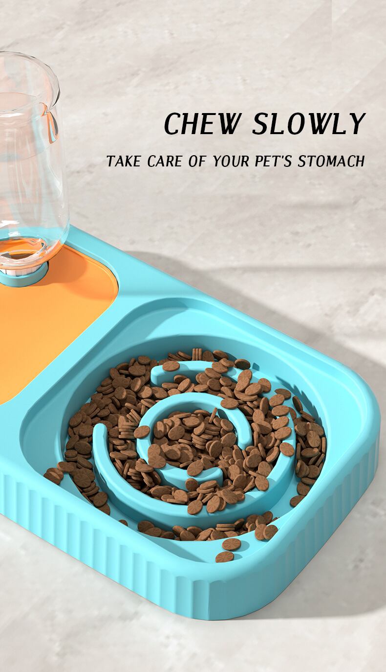 CAWAYI KENNEL 猫ダブルボウル 自動飲料水 キャットフードボウル 犬 スローフードボウル 水入れ ペット用品 転倒防止