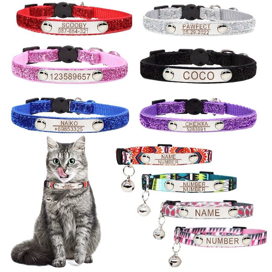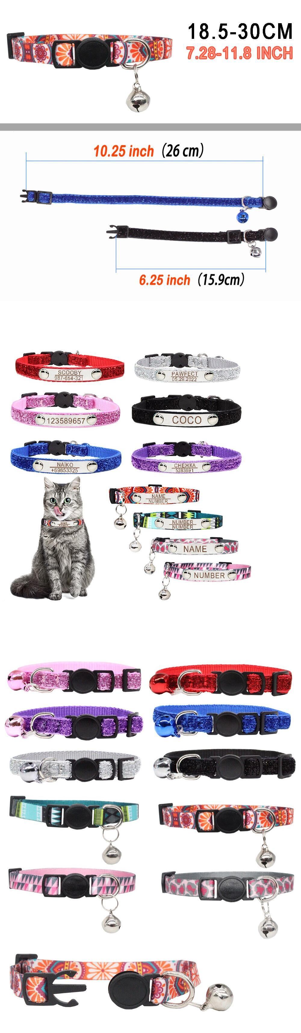 パーソナライズされた ID 猫の首輪 調節可能な安全バックル ベル付き 刻印無料 ナイロン ネックレス 子犬 子猫 ネックレス
