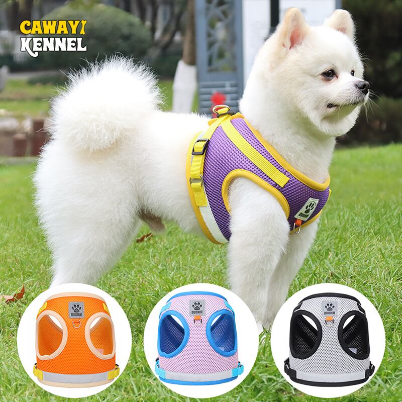 CAWAYI KENNEL メッシュ ペット ハーネス + リード セット トレーニング ウォーキング リード 小型猫 犬 ベスト ハーネス セット 通気性 調整リード
